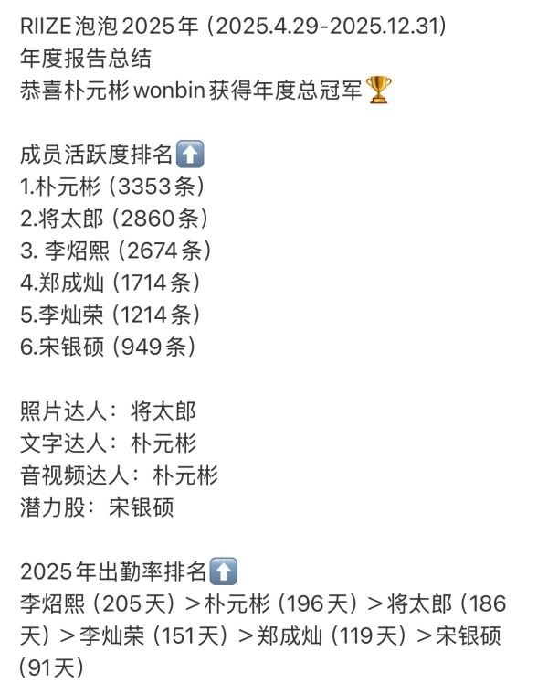 RIIZE和 NCTWISH泡泡年度总结yushi和宋银硕谁才是真正的恨粉天后?是仅来70天的得能勇志还是949条的宋银硕?