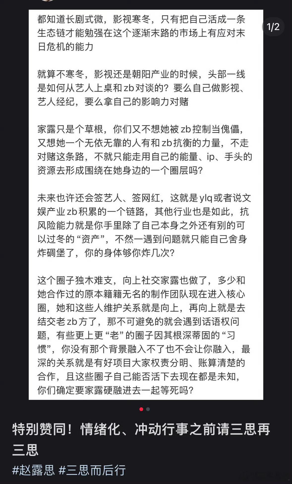 赵露思点赞收藏的这篇应该是反对粉丝狙朋友狙商务吧 力挺自己的好友圈了