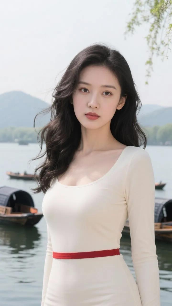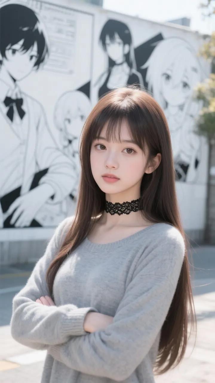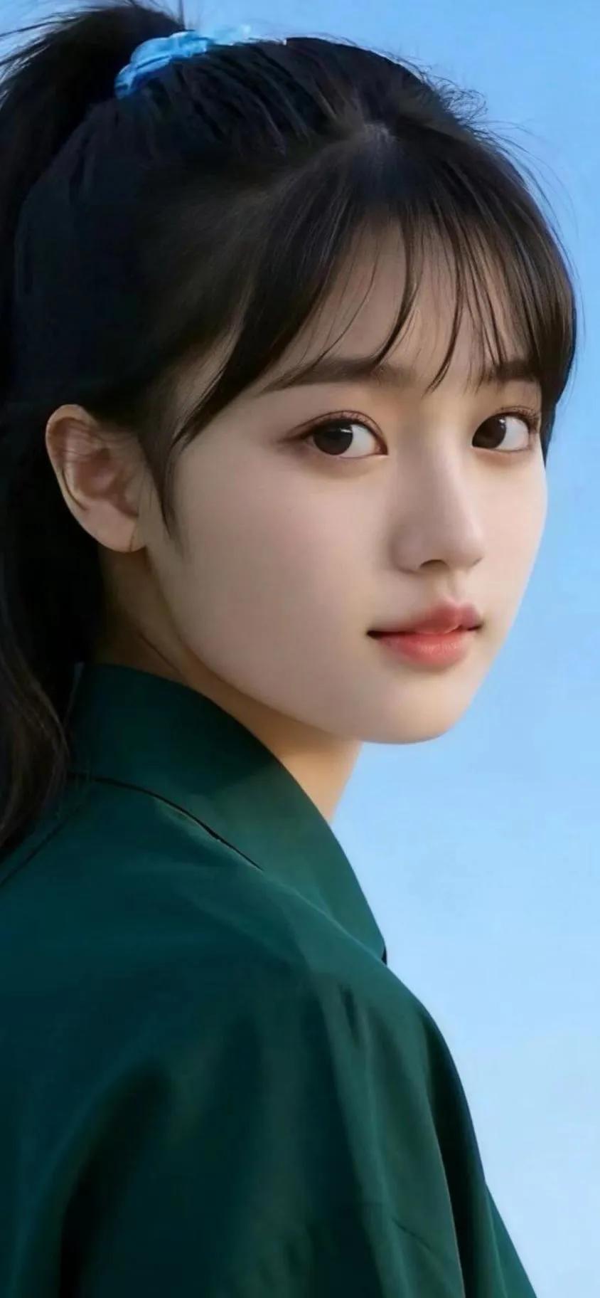 温柔甜美的少女,蓝色吊带裙搭配白色蝴蝶结,清新自然。