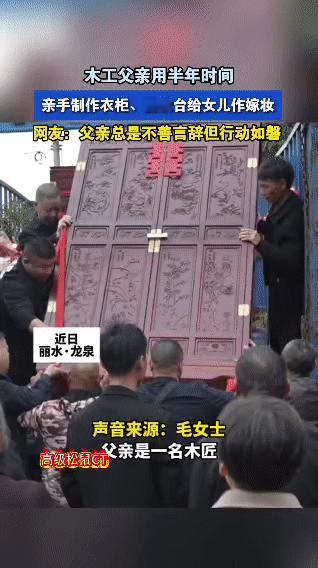 浙江丽水龙泉的毛女士出嫁,身为木匠的父亲悄悄花了半年时间,熬夜到深夜十一点,亲手