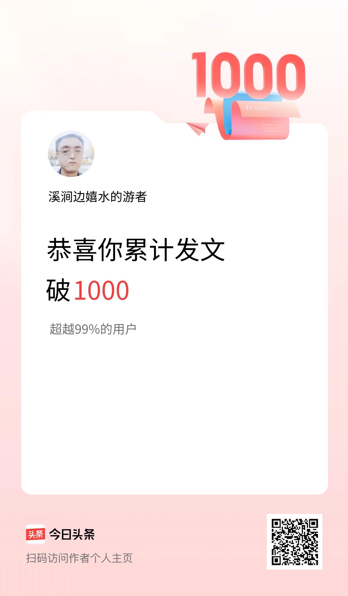 我在头条累计发布内容破1000啦!