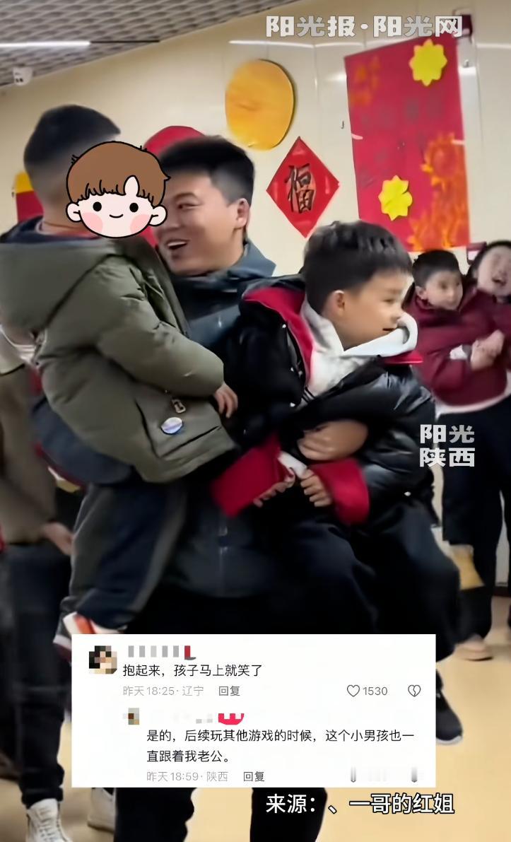 都是家长送锦旗给幼儿园或者病人送锦旗的医生,第一次见有幼儿园送锦旗给家长的! 事情是这样的,近日,陕西一家幼儿园举办亲子活动,活动中,一位爸爸抱着自己的儿子欢乐起舞时,发现前面有一个小男孩落单了,应该是家长没有来,几乎所有孩子都有家长抱着,他家长没到,就一个人孤零零的,感觉在人群中无所适从,这时候,这位爸爸一把也将这个孩子抱在怀中,他一首抱着自己儿子,一首抱着这个孩子,那个孩子被抱起后,明显情绪高昂了,脸上有了笑容。毕竟,他一个孩子,无所适从站在人群中,是多么无助啊,现在这个陌生的叔叔抱起了他 ,让他也有参与感,这一刻这个孩子应该充满了感动。 这位爸爸获得了很多网友的点赞。 有的网友说:什么高富帅,其实这样的男人就是最好的。还有网友说:这群人中这位爸爸最帅。 本以为事情到此就完了,没想到,幼儿园竟然给这位爸爸送锦旗了。 这位男家长的妻子说:意外收到幼儿园的锦旗,感恩幼儿园的肯定,也谢谢全网网友的暖心留言。老公说只是不忍心看孩子孤单,举手之劳而已。平凡的小举动也能被看见被夸赞,真的很暖心!愿这份小小的善意,能传递给更多人~ 还有网友提醒,对于孩子学校里的亲子活动,实在没空参加就给孩子请假吧,不然人家都是有家长陪伴的,就你家娃孤零零一个人,太可怜了。