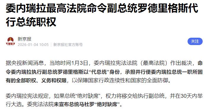 委内瑞拉副总统罗德里格斯绝对算是个“铁娘子”,1月3日-4日,在马杜罗“被掳”之后,她力挽狂澜,临危不乱,迅速凝聚人心。现在巴西已经承认她接替马杜罗,成为委内瑞拉领导人。 1月4日,罗德里格斯紧接着召集了首次内阁会议,内政、国防、外交等30多个部门的负责人悉数出席。会议上,她明确提出核心目标:保障国家正常运转、保护公民安全、坚决捍卫国家主权,各部门也纷纷表态将制定协同战略,共同抵御外部势力的颠覆图谋。 与此同时,委内瑞拉国防部长洛佩斯也发表讲话,宣布武装部队启动全面战备状态,而这支关键力量明确表态承认罗德里格斯的代理领导地位,这无疑为她的执政根基增添了重要砝码。 事实上,罗德里格斯能够快速掌控局面,离不开她深耕政坛多年的积累。这位1969年出生于加拉加斯的政治家,毕业于委内瑞拉中央大学法学院,还曾赴法国深造,不仅拥有扎实的专业功底,更在通信、外交等多个关键岗位任职过。 2018年起担任副总统后,罗德里格斯还执掌着国家经济和石油命脉,是马杜罗政府核心圈中极具影响力的人物。此前在国际舞台上,她就多次为委内瑞拉发声,面对外部压力从不退缩,如今临危受命,更是将这份果敢发挥到了极致。 国际社会的态度也在不断明晰,其中巴西的表态尤为关键。1月3日,巴西外交部代理部长达罗莎就明确表示,在马杜罗缺席期间,巴西政府认定罗德里格斯为委内瑞拉领导人,同时重申支持国际法、维护各国主权的立场。 巴西总统卢拉还特意通过声明,谴责美方的袭击行动,强调委内瑞拉局势必须通过和平途径解决。 巴西与委内瑞拉接壤,其态度不仅影响着两国边境的稳定,也对整个拉美地区的立场起到了一定的引导作用,这份承认无疑是对罗德里格斯领导地位的重要认可。 截至目前,联合国安理会已定于1月5日召开紧急会议,讨论美方此次非法军事行动,包括中国、俄罗斯、法国等多个国家和国际组织都已发声谴责美方行为,认为其违反了《联合国宪章》基本原则。 而罗德里格斯这边,一边坚定推动国内各项事务有序开展,一边也没有关闭对话大门,明确表示愿意在国际法框架下与美方建立相互尊重的关系。 从突发危机到稳住局面,罗德里格斯用短短两天时间展现了“铁娘子”的硬核实力。面对美军突袭的外部压力、国内局势的混乱无序,她既没有妥协退让,也没有慌乱失措,而是用清晰的表态、果断的行动凝聚起全国上下的力量,更赢得了国际社会的认可。 眼下,委内瑞拉的局势依然复杂,马杜罗预计将于1月5日在纽约“出庭受审”,后续挑战仍在,但有罗德里格斯这样临危不乱的领导者坐镇,这个南美国家抵御风雨的底气并没有被浇灭。