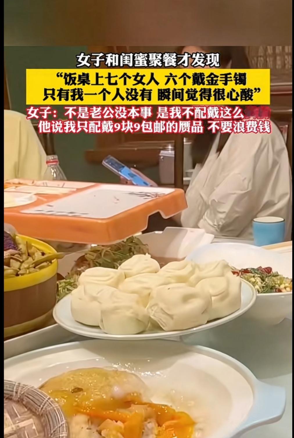 女子独自坐在座角,自己有些失落,和闺蜜聚餐发现:“饭桌上七个女人六个戴金手镯,只有自己没有”!在我们农村,这个女子绝对是过日子的一把好手,女子称不是老公没本事,而是自己只配带9块9包邮的,不想浪费钱!在这个现实与物质的社会里,还有这样的女子吗请问?别内耗,我也没有,老公一个月挣得能买两个镯子。就是金价太高自己舍不得买,不用外在的攀比,日子过的舒坦不舒坦自己知道就行。记住财不外露这样的聚会少去点吧!