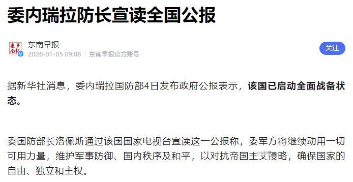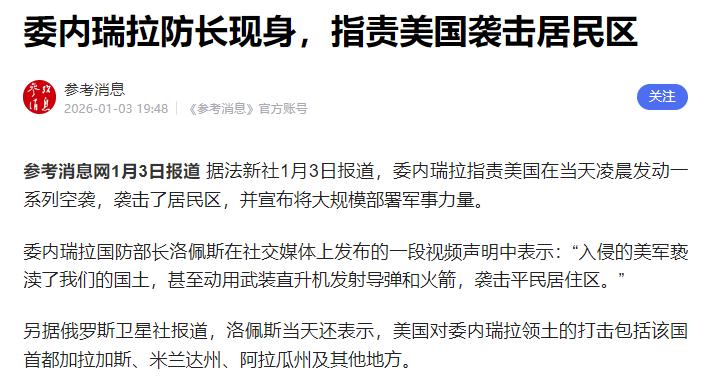 委内瑞拉突然宣布了。 1月3日凌晨,委内瑞拉国防部长洛佩斯在视频里说,美国的军机和直升机对加拉加斯、米兰达州、阿拉瓜州等地打了几轮,居民区受损,很多人受惊。 随后,内政部长卡韦略在街头劝大家稳住心态,别慌乱,同时委内瑞拉向联合国那边提了紧急开会的请求,并在全国大范围调动军队守要紧地方。 美军这次的突袭来得猝不及防,给委内瑞拉各地带来了实实在在的损失。在首都加拉加斯,多处居民区紧邻军事设施,爆炸产生的冲击波震得房屋玻璃哗哗作响,部分民房的墙体出现裂缝,外围的金属围栏和附近路灯被炸毁,空气中弥漫着烧焦的味道。 当地居民回忆,袭击发生时,天空中直升机盘旋的轰鸣声、爆炸声接连不断,还能看到机关枪扫射的火光,大家惊慌失措地四处逃散,场面混乱不堪。 除了房屋设施受损,民生保障也受到严重影响。加拉加斯南郊等受袭区域出现大面积停水停电,电信服务彻底中断,居民们无法与外界联系,缺水缺电的生活让大家苦不堪言。不少居民因为担心后续还会有攻击,纷纷收拾行李准备搬离家园,原本热闹的社区变得一片萧条。 更让人揪心的是,美军的攻击还波及了军事基地周边的平民区,相关部门正在紧急逐户排查死伤人员信息,每一个可能的伤亡数字背后,都是一个濒临破碎的家庭。 面对美军的侵略和境内的混乱局势,委内瑞拉政府迅速行动,展开了有条不紊的应对。 袭击发生后不久,国防部长洛佩斯第一时间通过视频向全国通报情况,明确指出美军的行径是赤裸裸的侵略,同时宣布启动所有国家防御计划,玻利瓦尔国民武装部队全面进入战备状态,坚决抵抗外来入侵。 为了稳定民心,内政部长卡韦略亲自走上街头,面对惶恐的民众耐心劝说,呼吁大家稳住心态,不要慌乱,相信政府和军队有能力守护国家和民众的安全。 卡韦略的现场安抚起到了积极作用,原本慌乱的民众逐渐平复情绪,有序配合相关防控工作。 在稳定内部秩序的同时,委内瑞拉积极寻求国际支持,第一时间向联合国递交信函,正式提出紧急召开安理会会议的请求。 在信函中,委方明确提出四项要求,包括谴责美国的侵略行为、要求美军立即停止袭击、采取必要措施让美国为其侵略罪行负责等。 据悉,联合国安理会已确定于当地时间1月5日召开紧急会议,讨论此次委内瑞拉局势,不少国家也已表态支持委方诉求,谴责美国违反国际法的行径。 委内瑞拉还在全国范围内大规模调动军队,对机场、港口、石油设施等关键点位实施重兵驻守。在加拉加斯街头,已经能看到装甲车巡逻的身影,民兵力量也按预案加入战备调度,与军警力量协同开展社会面巡控,构建起全方位的防御体系“亡羊补牢”。 目前,委内瑞拉境内仍处于全面戒备状态,安理会紧急会议的召开成为关注焦点。