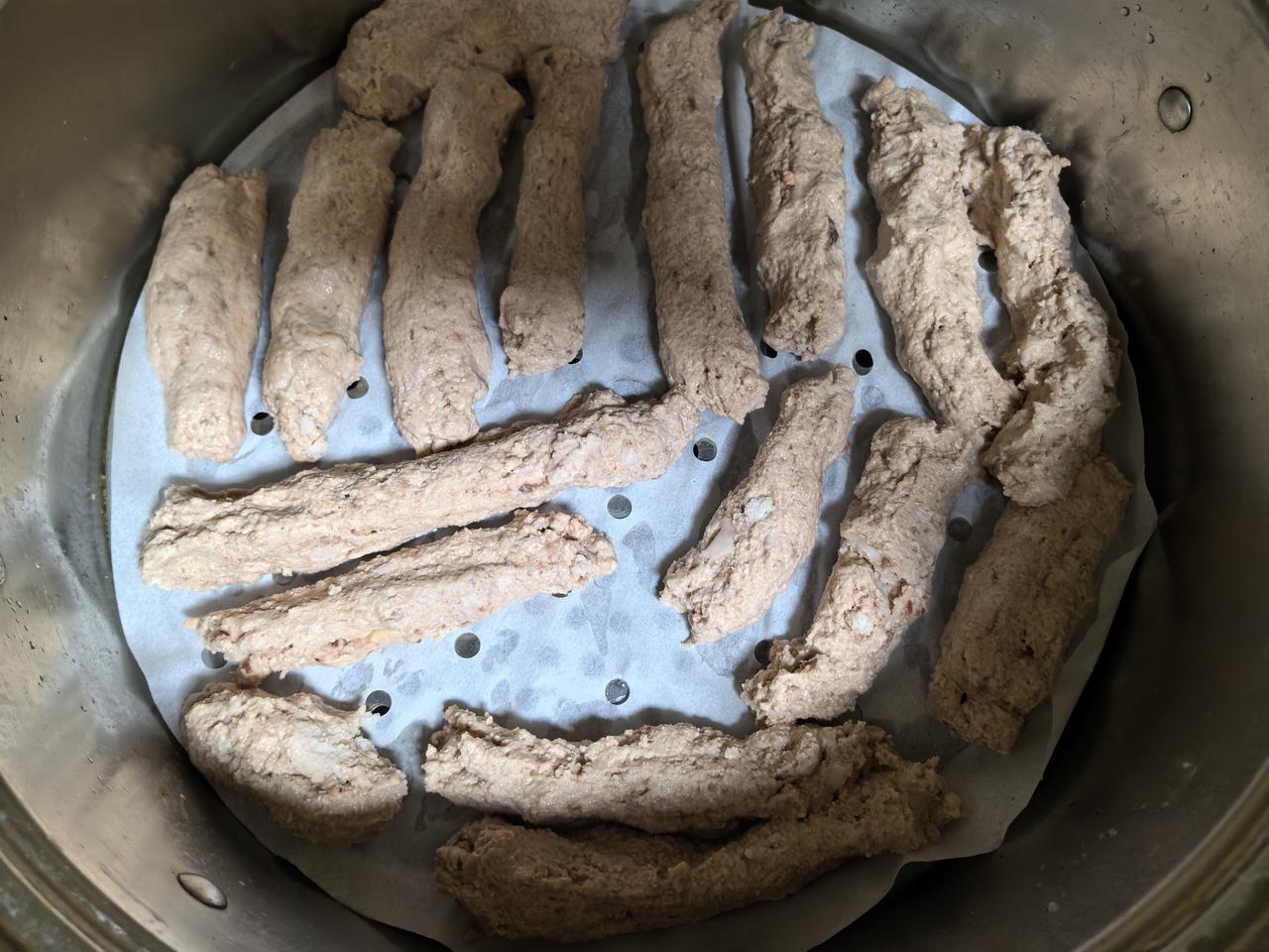 哇偶,我是不是可以开一家新鲜狗粮店 闲来无事,在大市场买牛肉牛骨,请师傅帮忙切割打碎,放入盆里加两个鸡蛋及面粉,搅拌均匀搓成条状放入蒸锅;自己在家剁碎了鸡胸肉、鸡心、胡萝卜、南瓜、白菜,再加进去馒头碎屑,搅拌均匀,放入蒸锅,两款狗粮就大功告成啦。 锅里隔水蒸熟,像蒸馒头一样的蒸法,别说,还挺香。 给途途吃的时候,把两种蒸熟的狗粮切片,再配点西兰花、鸡蛋黄之类的菜蔬,放锅里煮一下,只需要把西兰花煮熟就可以装途途专用狗碗里啦。 瞧,途途吃的多香,两分钟,碗里一点不剩。 吃不完的这两种狗粮饼,放入太阳下晒干,便于存放,或者放冰箱里冷冻起来,啥时候吃啥时候拿出来切片煮熟就行了。狗粮和前期包的饺子混着给途途吃,我个人觉得比买的狗粮放心多了。 又做多了,需要的朋友可以联系我哦。或者有需要做狗粮的友友可以联系我,我教你方法。狗狗粮 鲜鸡肉狗粮 鲜蒸狗粮 狗粮蒸箱 狗粮加工厂房 营养果蔬狗粮 全价烘焙狗粮