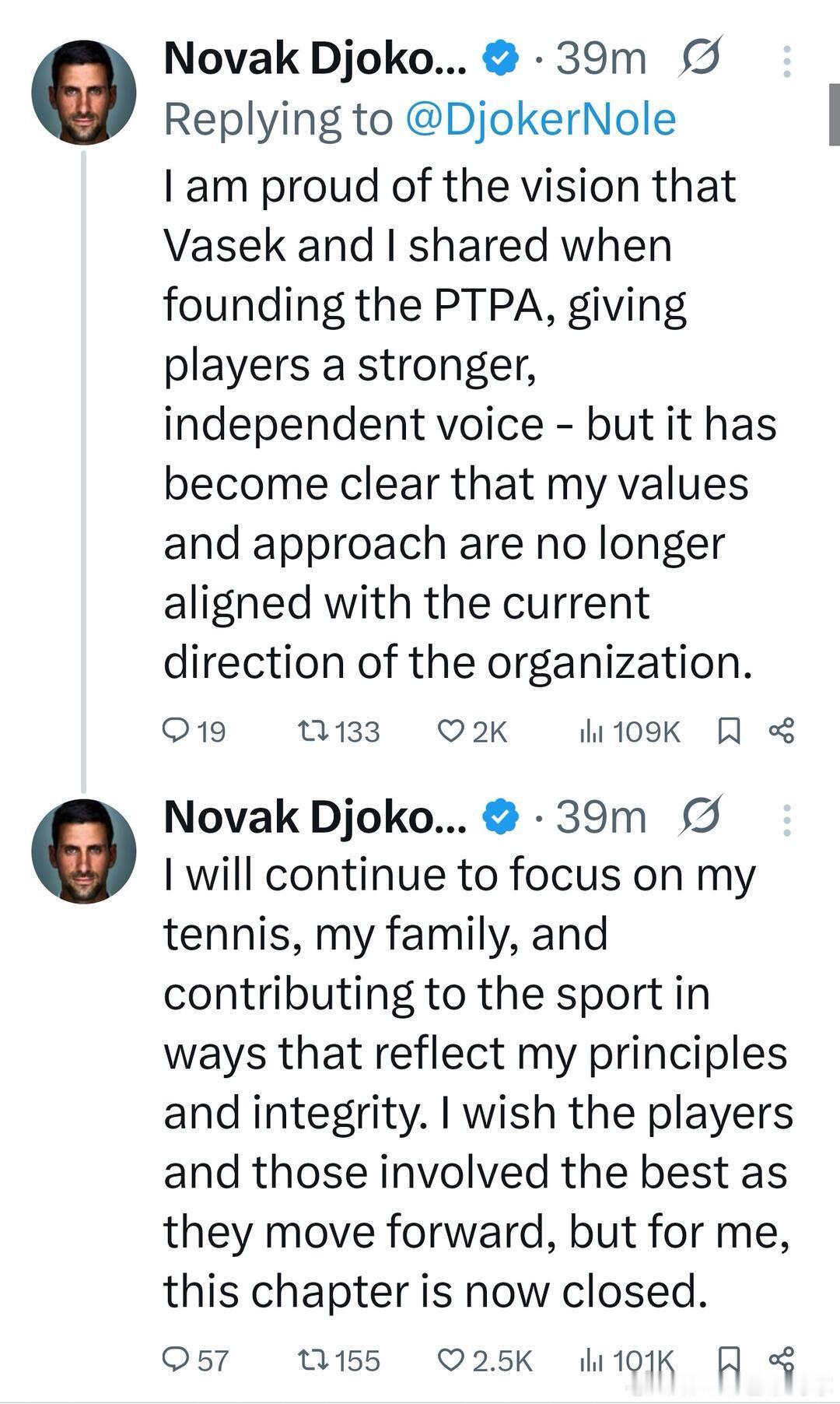 德约科维奇宣布与PTPA划清界限推上粉丝以为德约要退役,前几个单词确实很敏感,原帖已爆网球talking大会ATP 德约科维奇退出PTPA