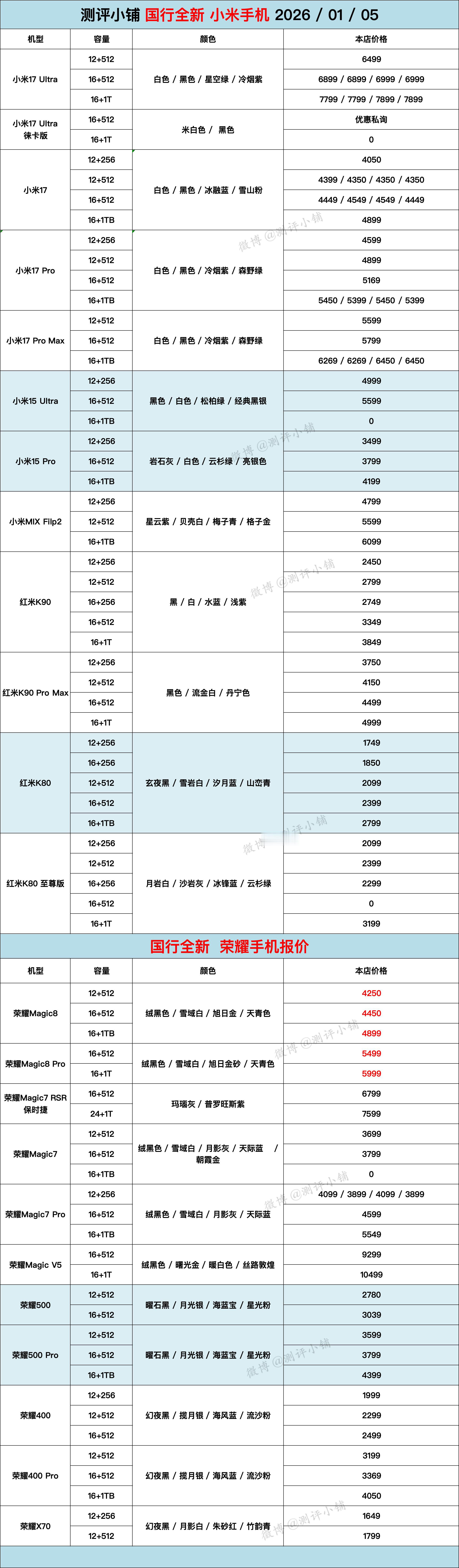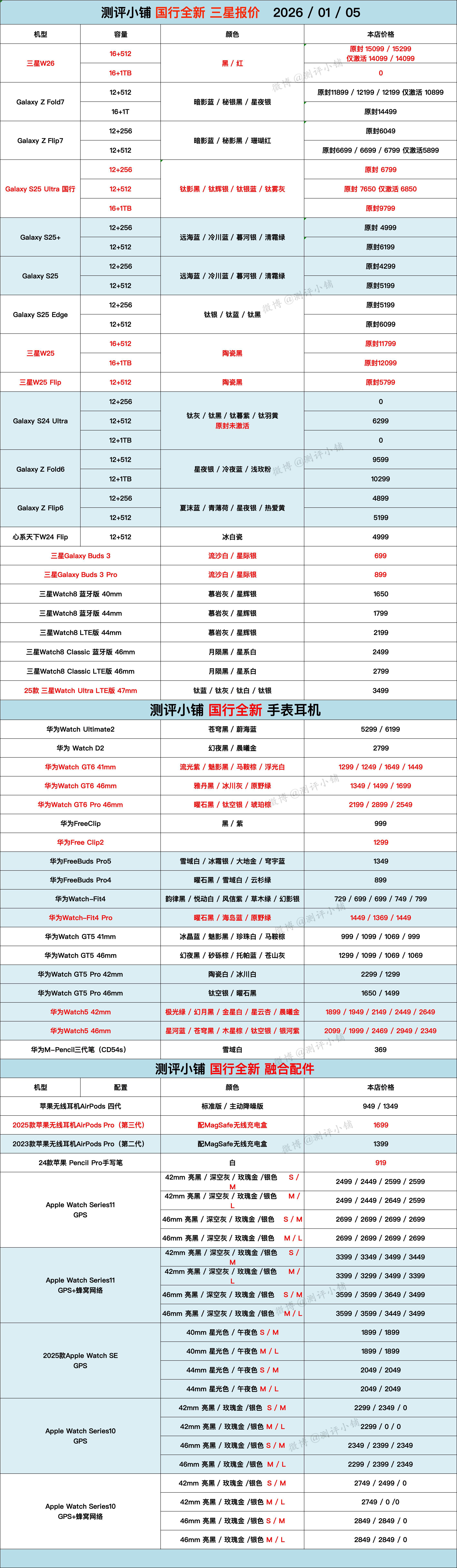 01-06全新机。iPhone17、iPad系列,华为Mate80、Mate X