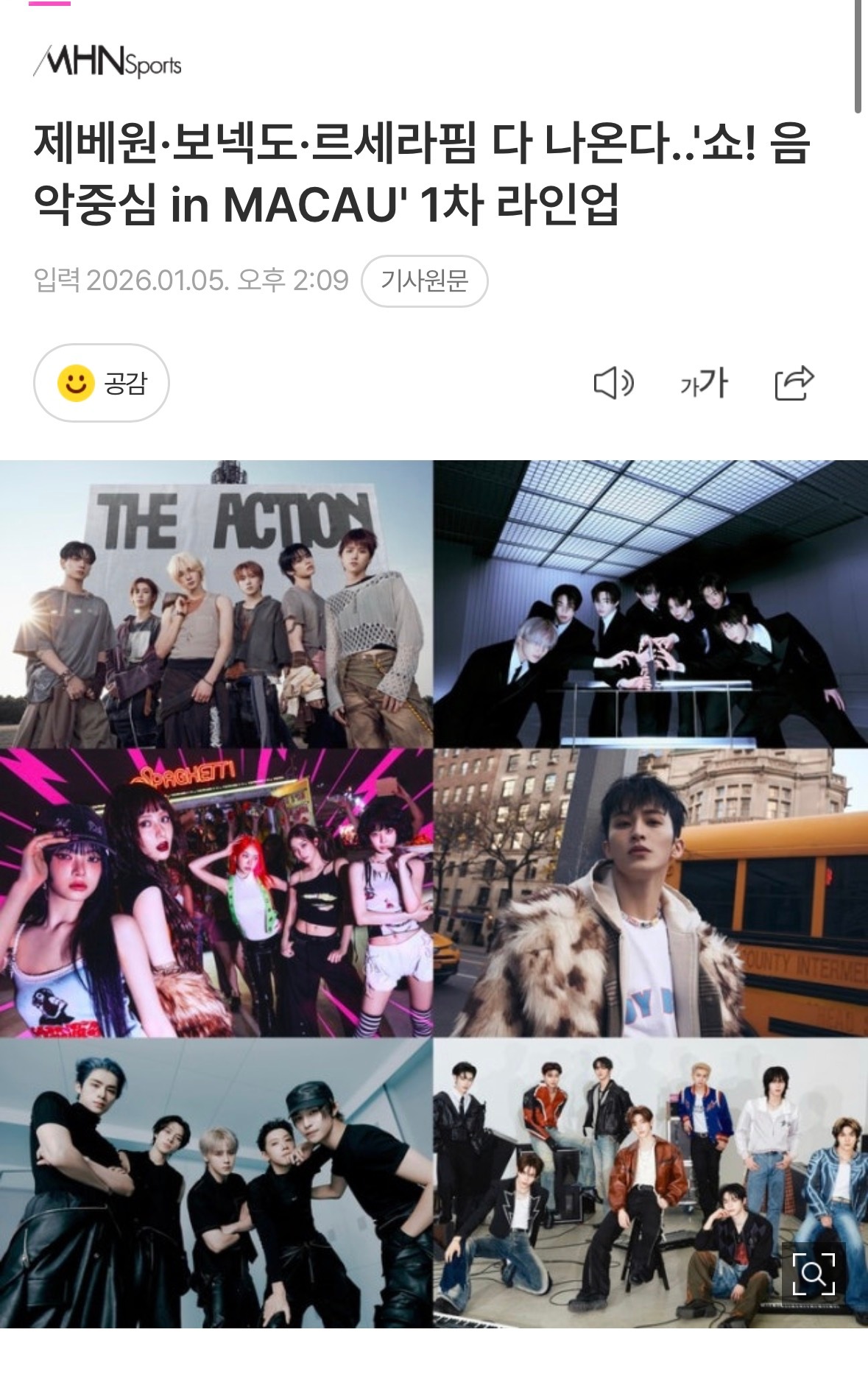 Show!音中in MACAU第一轮演出阵容✨BOYNEXTDOOR、ENHYPENLE SSERAFIM、李马克、WayV、ZB1 📅举办时间:2月7-8日