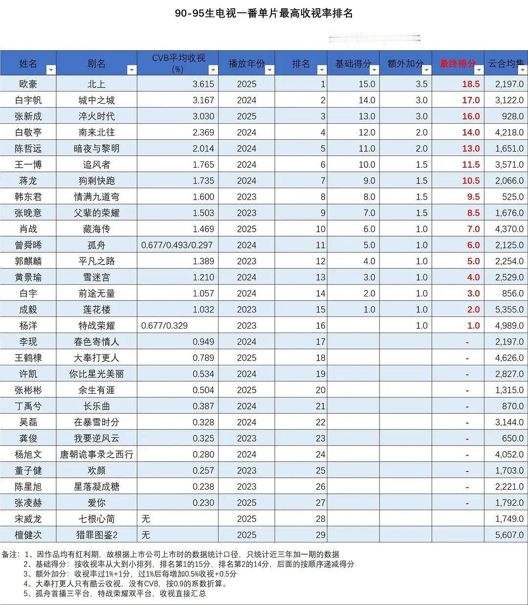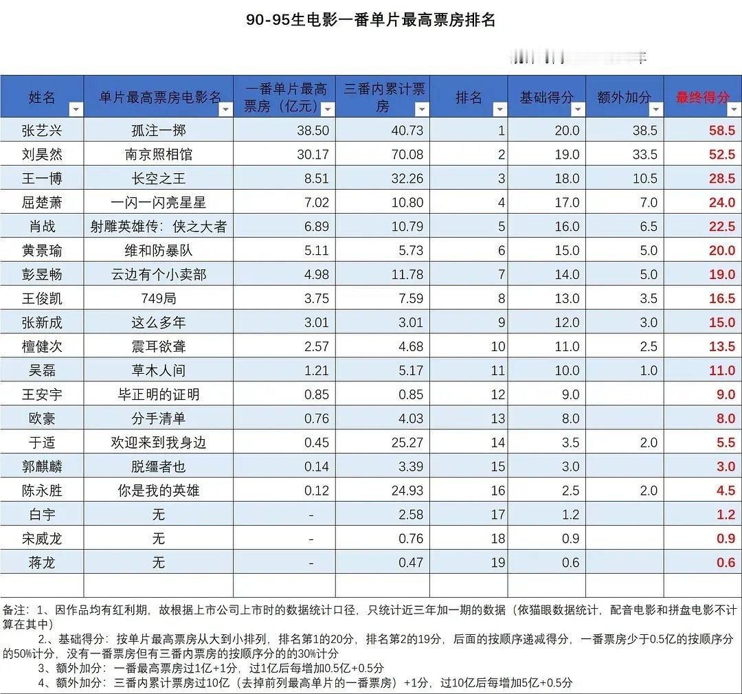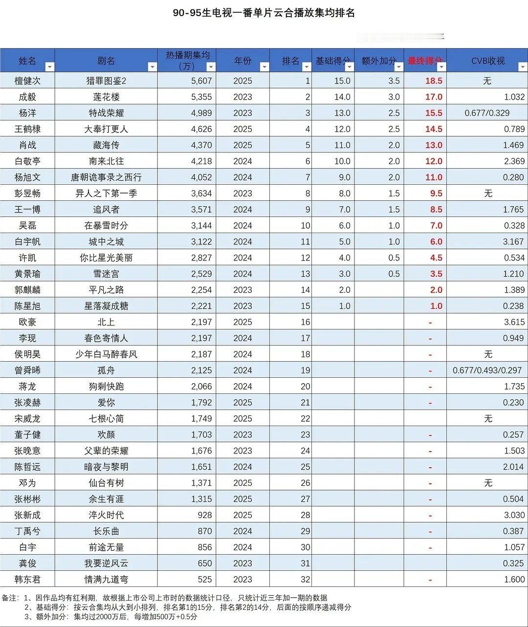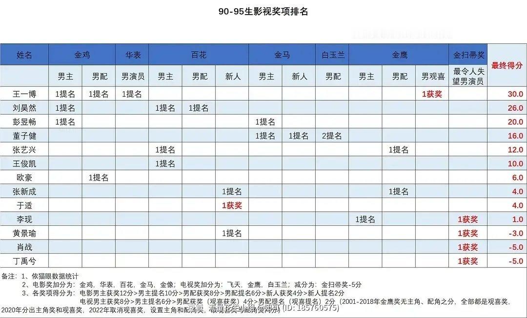 90-95🥜近三年(2023-2025年)影视实绩、奖项、商业价值综合排名