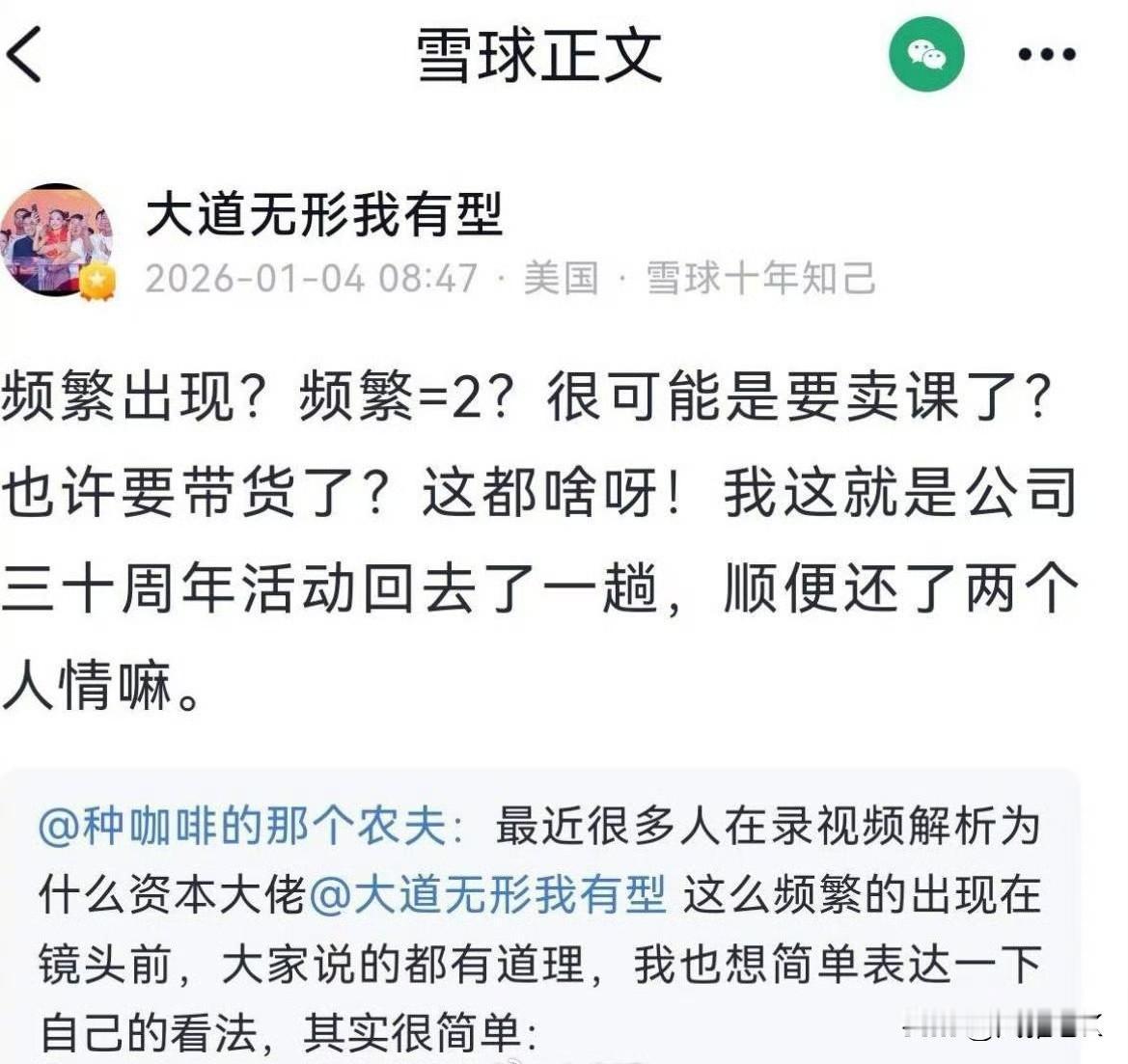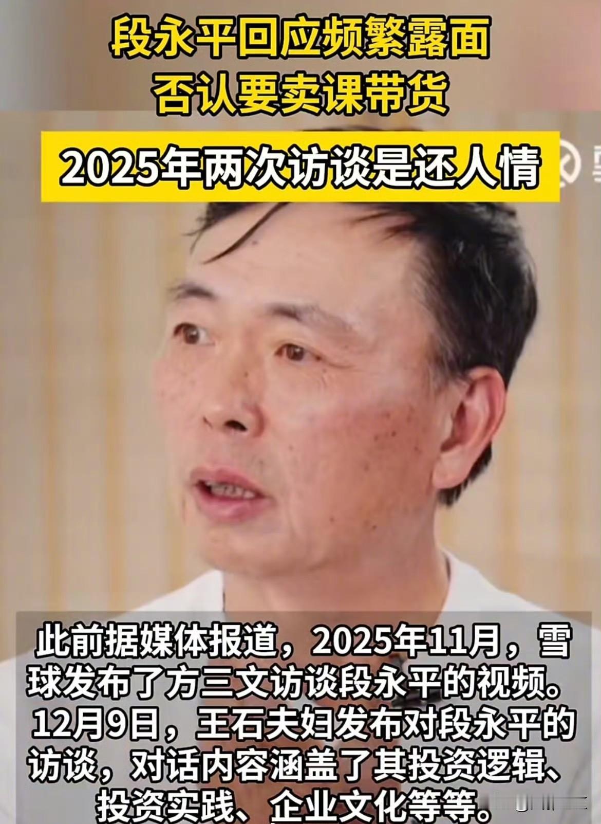 段永平回应“频繁露面”: “频繁出现?频繁=2?很可能是要卖课了?也许要带货了?