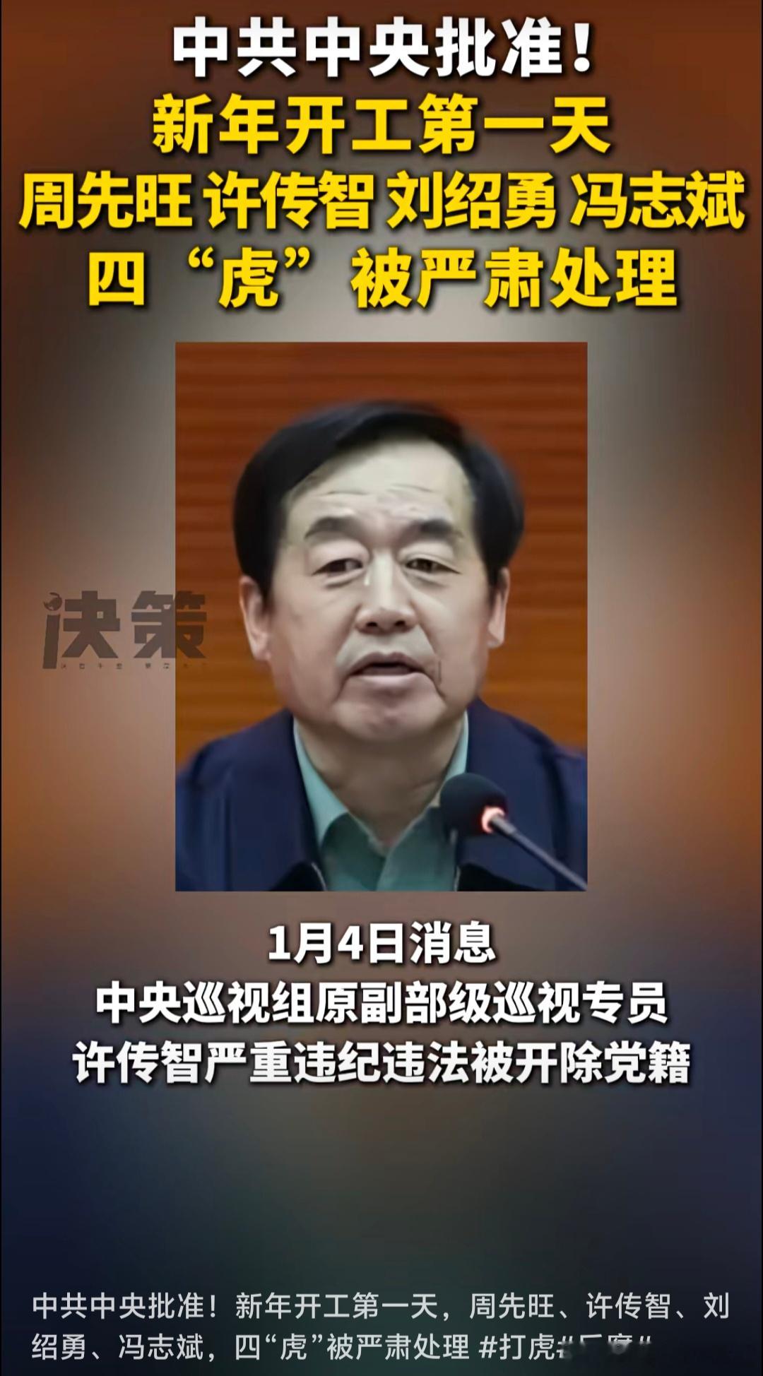 中共中央批准 : 周先旺、许传智、刘绍勇、冯志斌四“虎” 被严肃处理!(来源 : 决策杂志)