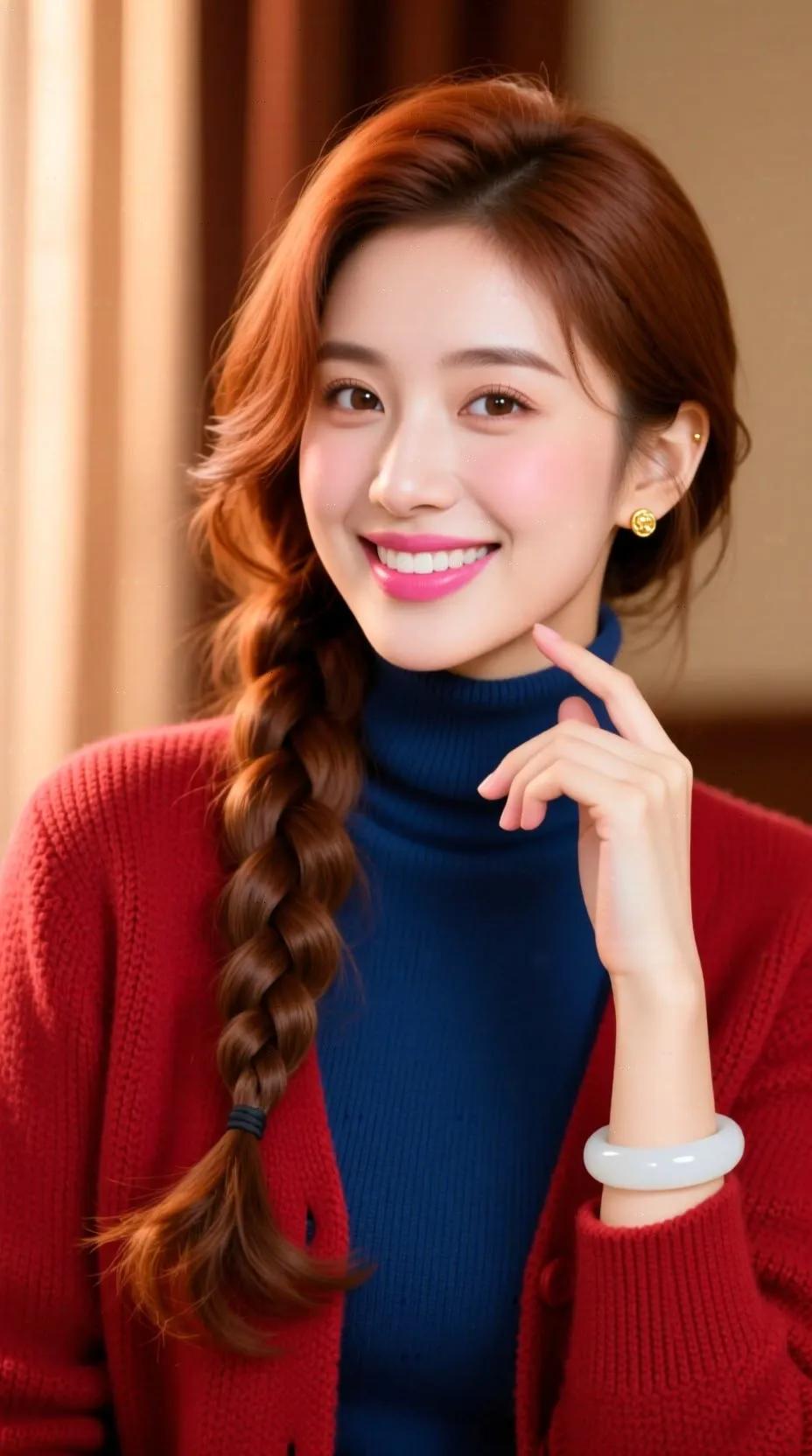 甜美笑容,红发编辫,冬日穿搭指南🌟