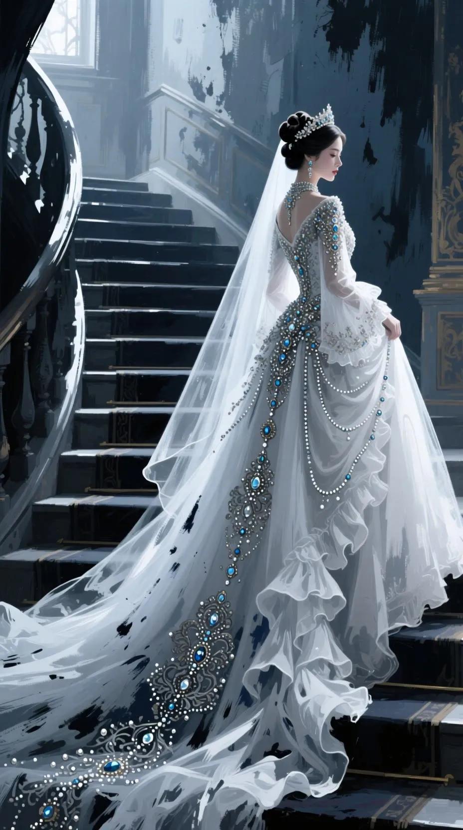 温柔黑发编发,甜美白裙,复古蕾丝,优雅气质,少女心满满。