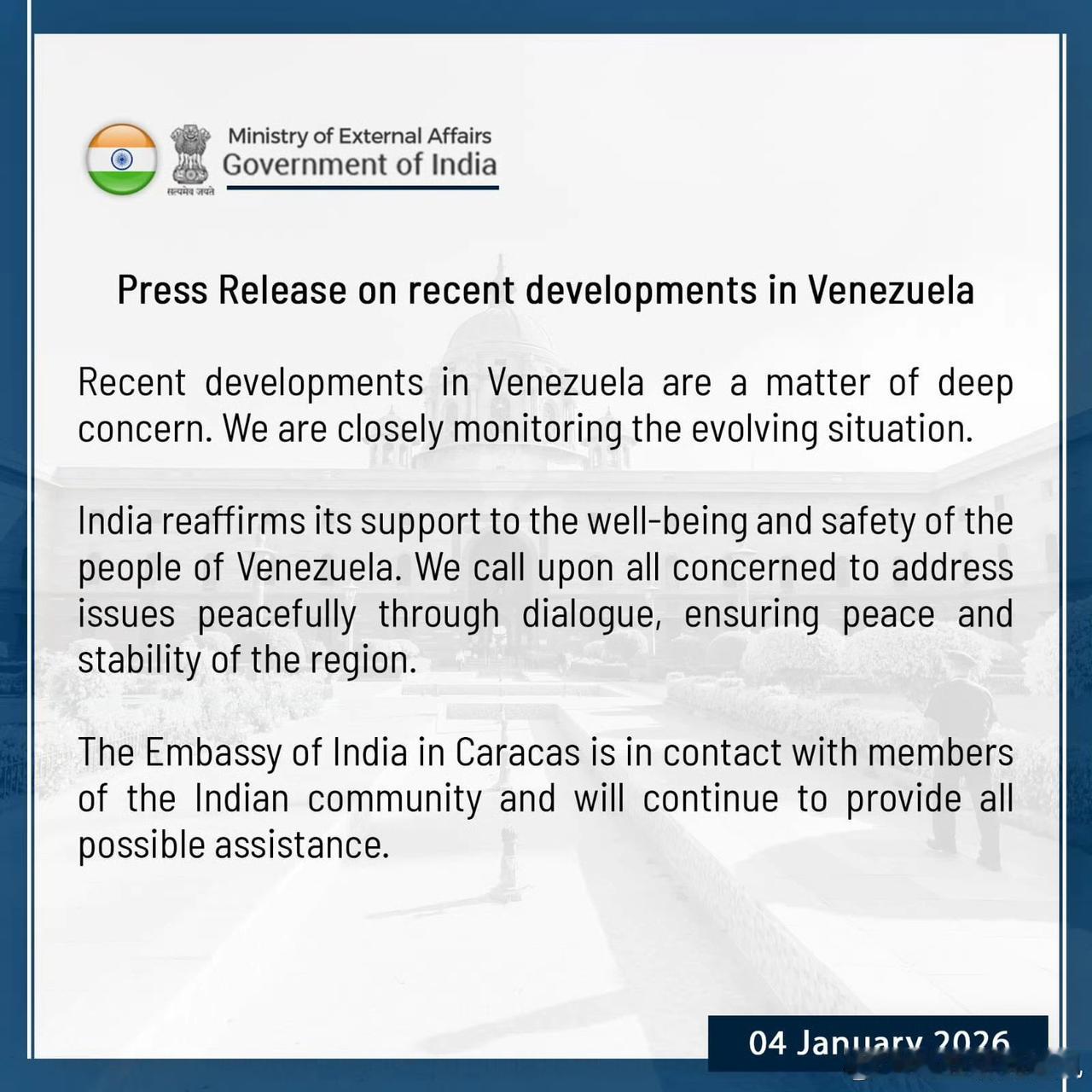 印度对1月3日发生的事情发表了声明,没有谴责只说关注,没有反对只有呼吁。关注表明自己是观众,呼吁有时候可能是喝彩。该亮明态度就要亮明态度,该用手段就要用手段。