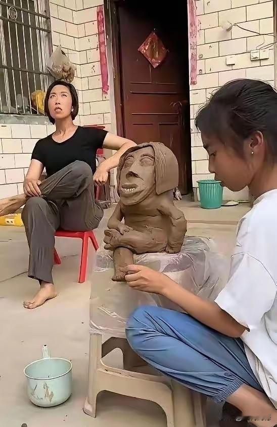 小朋友的泥塑水平是非常高的,她能够抓住这个女子的面部主要特征,用简简单单的泥巴,就能够把这个女子的精神气质和面部特征展现出来,这是非常不简单的,既有形似内容,又有神似的状态,这孩子是一个好苗子,应该在艺术方面好好培养!