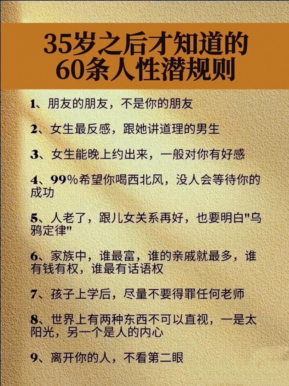 别再掏心掏肺!社交潜规则:3个小动作,让别人打心底喜欢你、尊重你! 社交潜规则:你越这样做,别人就越喜欢你、尊重你! 咱活了大半辈子,是不是越琢磨越明白:真心未必换真心,掏心掏肺反而容易被人看轻!你有没有过这种憋屈事:朋友有事你随叫随到,自己难处却没人搭把手;聚会时你抢着买单,人家却觉得你好拿捏;遇事你处处忍让,别人反倒得寸进尺! 其实啊,不是咱人缘差,是没摸透社交里的“隐形规矩”!那些走到哪儿都受欢迎、人人都尊重的人,从来不是一味讨好的老好人,而是悄悄守住了这几条底线!他们不靠嘴甜,不靠送礼,就凭几个不起眼的小动作,就让人打心底里信服、喜欢! 你是不是也想不通:为啥有的人话不多,却一呼百应?为啥有的人不刻意合群,却朋友满天下?秘密就在这里!这几条潜规则,没有弯弯绕绕,全是实实在在的大实话,不管是邻里相处、朋友交往,还是职场共事,都能用得上! 今天就把这几条“社交硬通货”全给大家抖搂出来!不用费钱费力,不用委屈自己,照着做,别人不仅会喜欢你,更会打心底里尊重你! 讨好换不来尊重,靠谱才能赢得真心! 想知道这几个让你人气暴涨的社交小动作吗?接着往下看,学会了,你的人际关系立马不一样!人际交往规律 职场人际法则 人际交往诀窍
