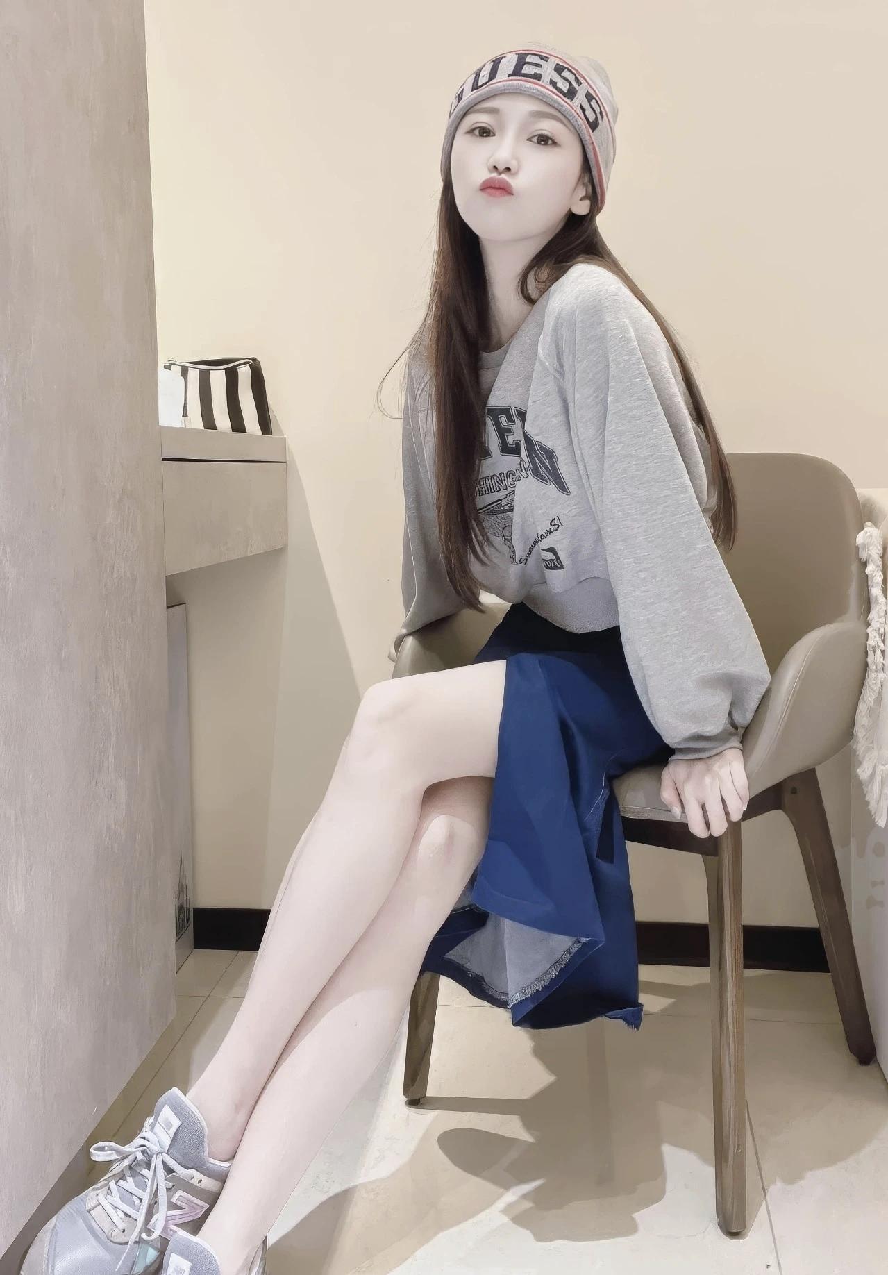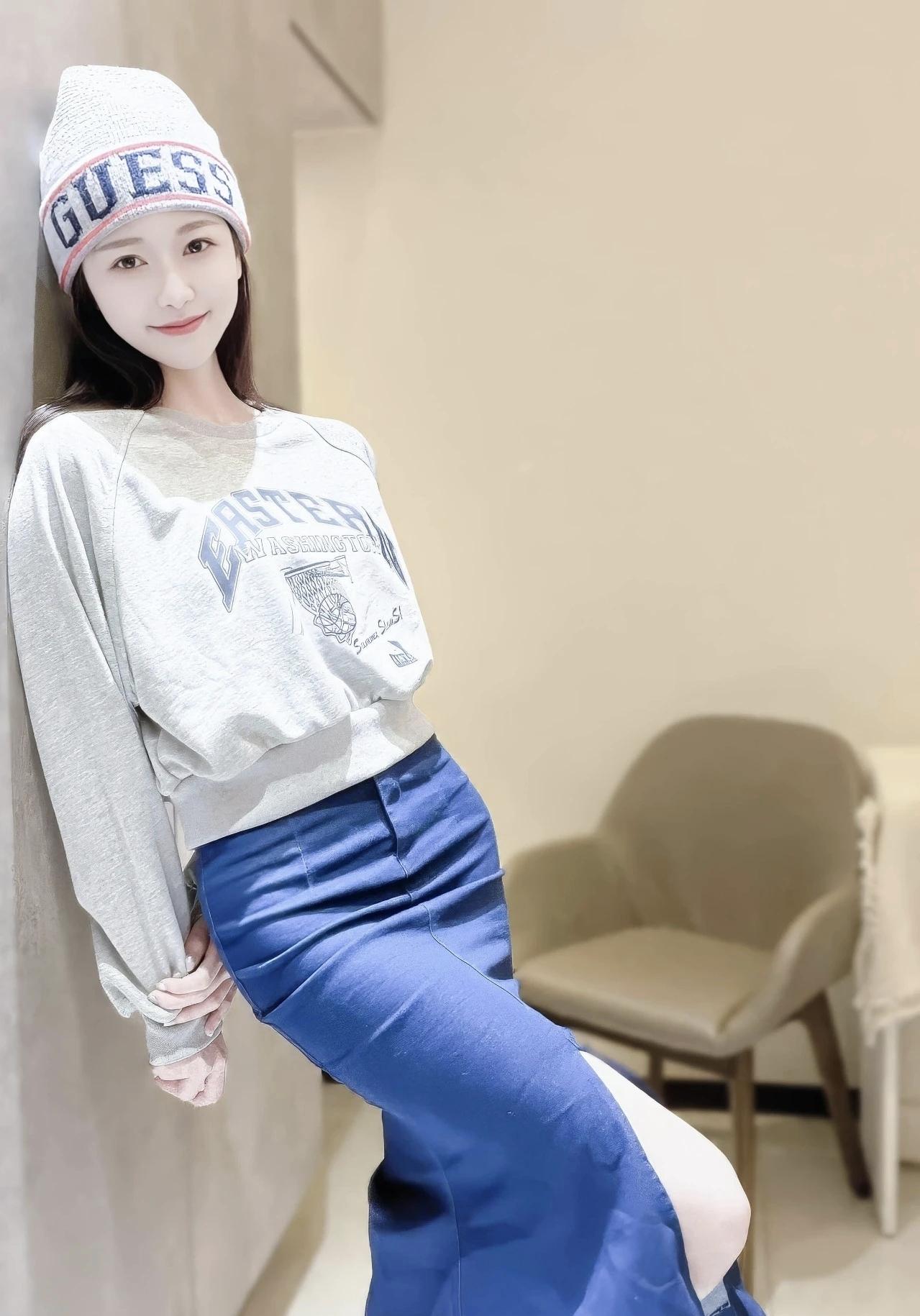 浅尝一下运动风与轻熟风的混搭,宝蓝色鱼尾裙真的很提气色,冷帽更是点睛之笔~