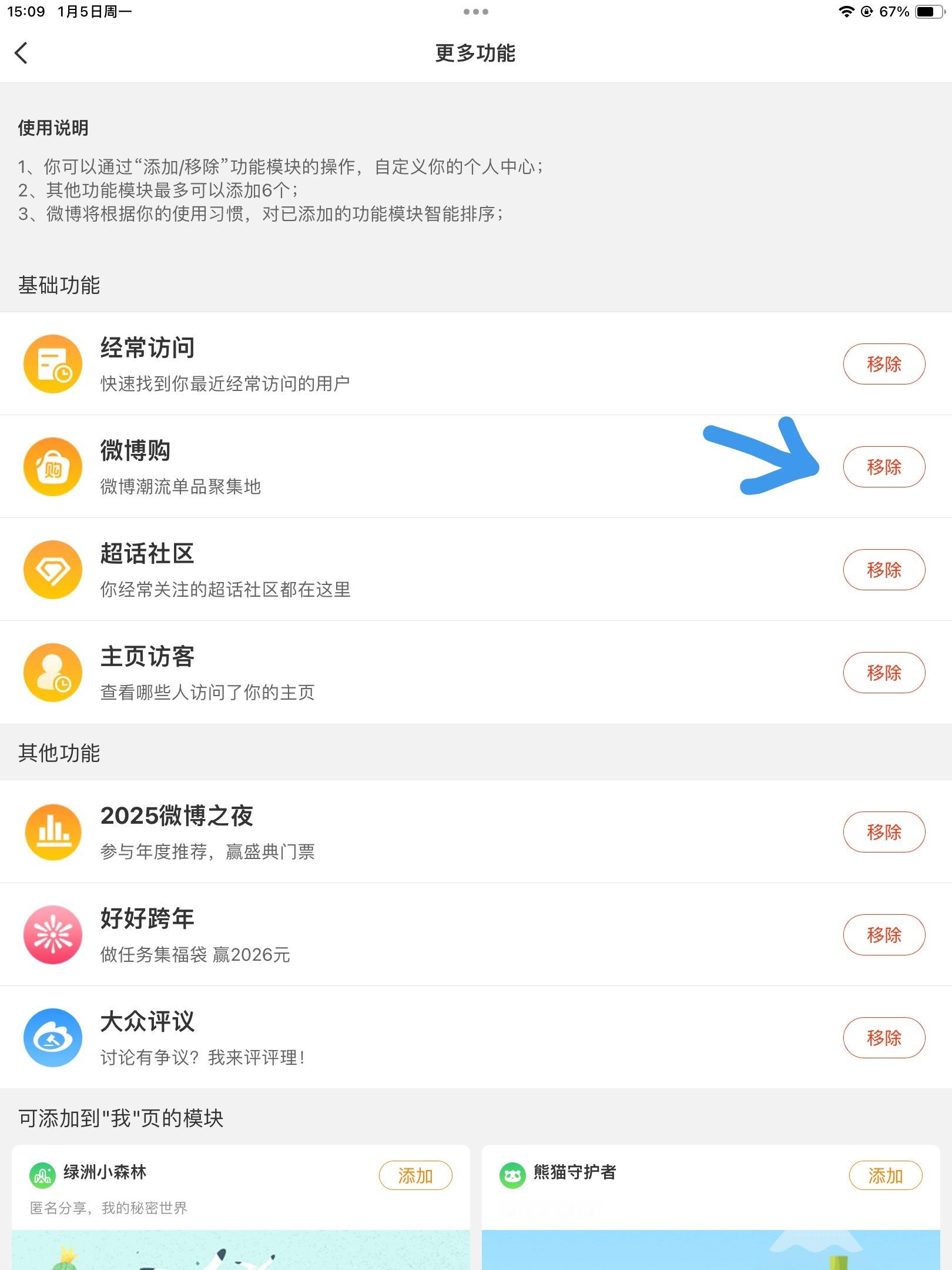 难受了两天终于给我找到办法把微博购移除了舒服😌