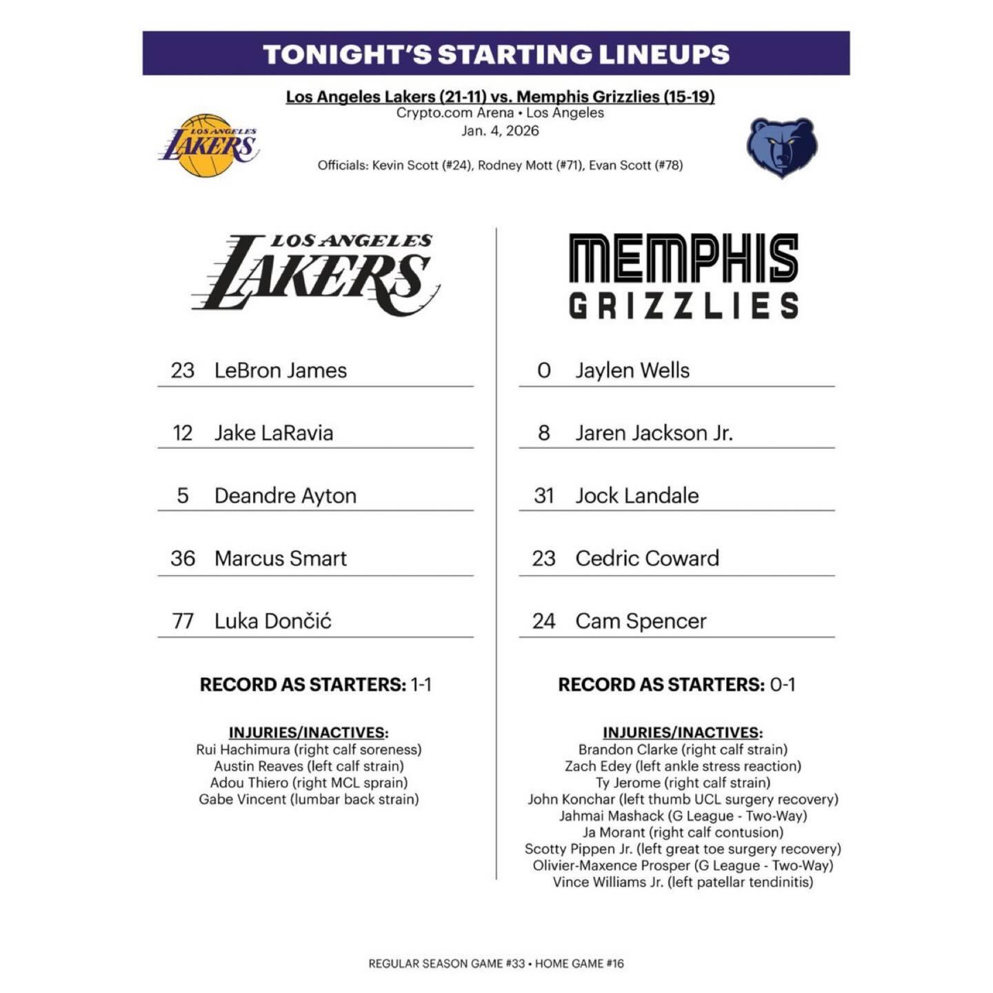今日二番战灰熊首发:东契奇、斯玛特、拉拉维亚、老詹、艾顿!灰熊vs湖人洛杉矶湖人