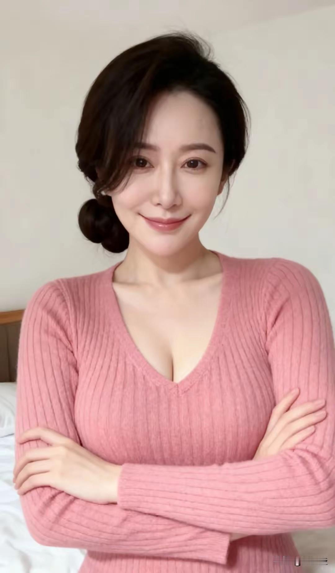 温柔甜美的粉色毛衣,搭配优雅的盘发,尽显优雅气质!🌸💖