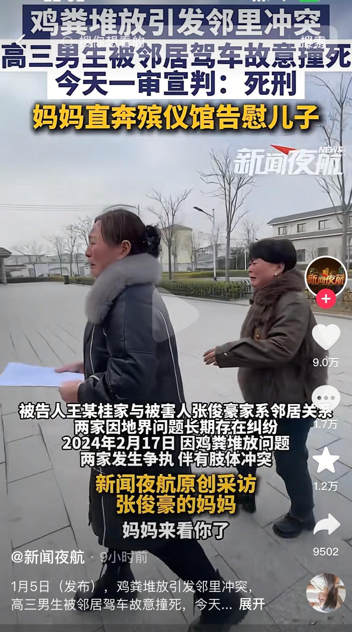 江苏响水张俊豪被恶意撞倒后,王某桂立刻拨打报警电话,试图以单纯的交通事故来蒙混过关!殊不知,他真的小看了警方的办案能力。 张俊豪,时年19岁,他是盐城响水一所重点高中的优秀学子,悲剧发生之时,已是其高考冲刺阶段。 撞倒他的人,便是其36岁的邻居王某桂!只因两家邻里纠纷,王某桂便心怀不满,对无辜的张俊豪做出了让人不可理解的事情。 2024年5月29日那天,他驾车将张俊豪撞倒在地。眼见对方不省人事后,王某桂拨打了报警电话。之所以这么做,他不是为了第一时间救人,而是想以交通事故为自己脱罪! 毕竟,恶意撞人和交通事故在法律性质上与责任认定上有着本质区别。 当天,王某桂称自己不慎撞到了人,他给出的理由是因为来不及刹车了,所以才发生了事故。 但警方经过深入调查后,发现此案并不简单。一方面,王某桂和被撞的张俊豪为邻居关系,两家曾有邻里纠纷。另一方面,路上有监控显示,王某桂在撞上张峻豪前一直尾随他,并多次变道、加速,而后冲撞他。 2024年5月31日,在警方的讯问下,王某桂才终于讲出了实话,并承认自己故意冲撞张俊豪的事实。之后,他以故意杀人罪被逮捕。2026年1月5日,王某桂被判死刑! 像王某桂这样的人真的太可怕了,一点邻里之间的小事完全可以用更好的办法去解决,但他却用了最愚蠢的方式! 更可气的是,他还天真的想要用交通事故来掩盖事实。殊不知,我们的人民警察不是好糊弄的。他们对每一处细节都一丝不苟,最终很快就戳破了王某桂的谎言! 时隔一年多,今时今日,可怜的张家人终于等到了属于他们的公正!只可惜,无论怎样,优秀帅气的张俊豪都再也回不来了![祈祷][祈祷][祈祷] (原信息源:新闻夜航、晨视频、张俊豪妈妈)