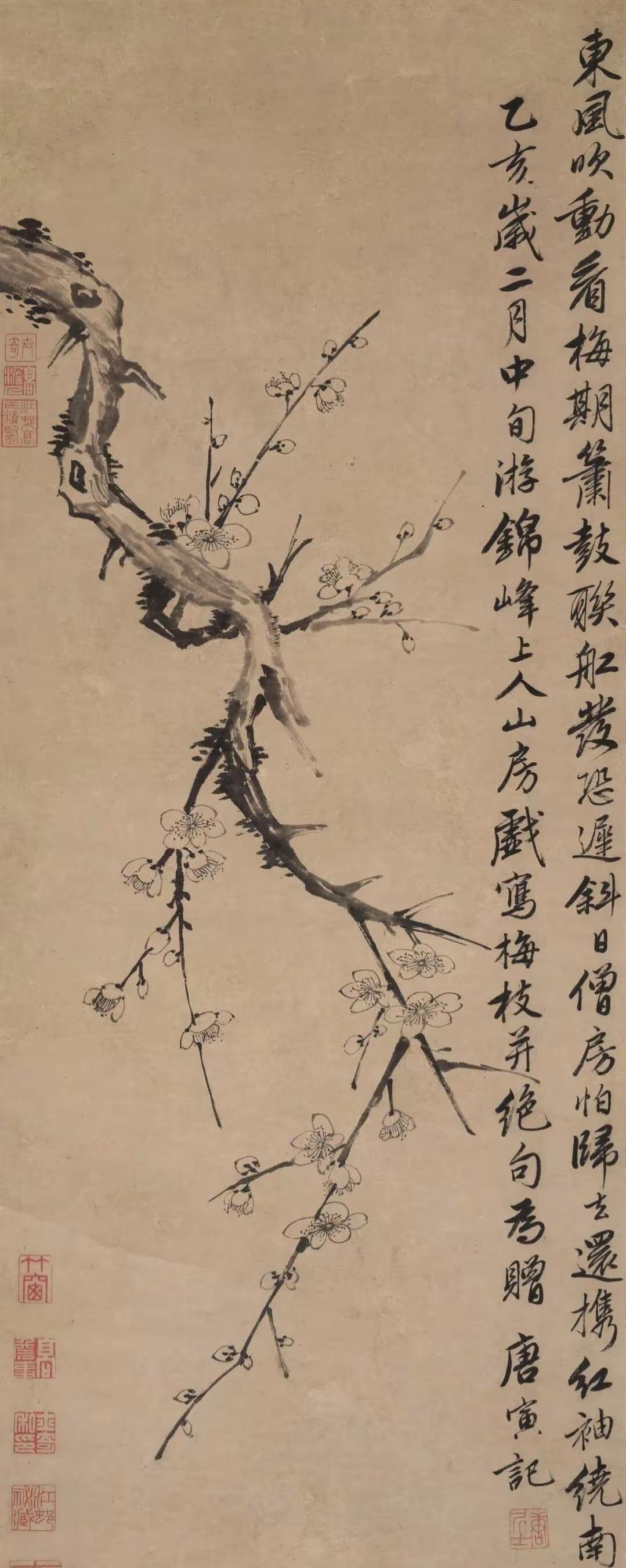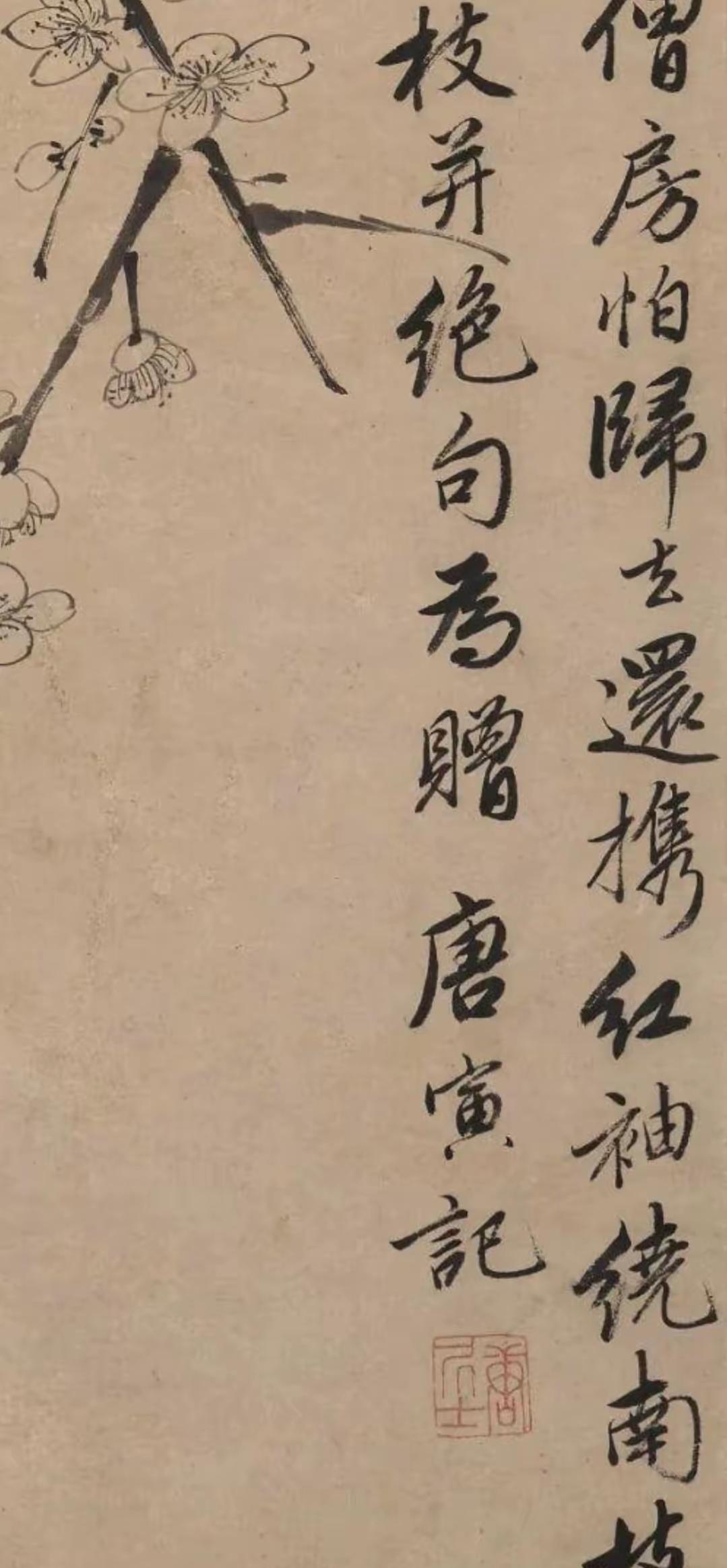鉴定!这才是唐伯虎真迹!今天看到一幅寒梅枯枝图,并配有一首诗,落款是唐寅。这幅画到底是不是唐伯虎真迹呢?经我鉴定绝对的真迹!鉴定一幅名人字画,要先从题字落款鉴别。首先,题款是一首诗,这符合江南才子的称号,也符合唐伯虎绘画落款的习惯。其次,书法流畅自然,无涩滞之感,书风与唐寅书风吻和。第三,唐寅签名与唐寅被确认的真迹对比无异!仅从书法上讲就可以断定唐伯虎真迹无异!