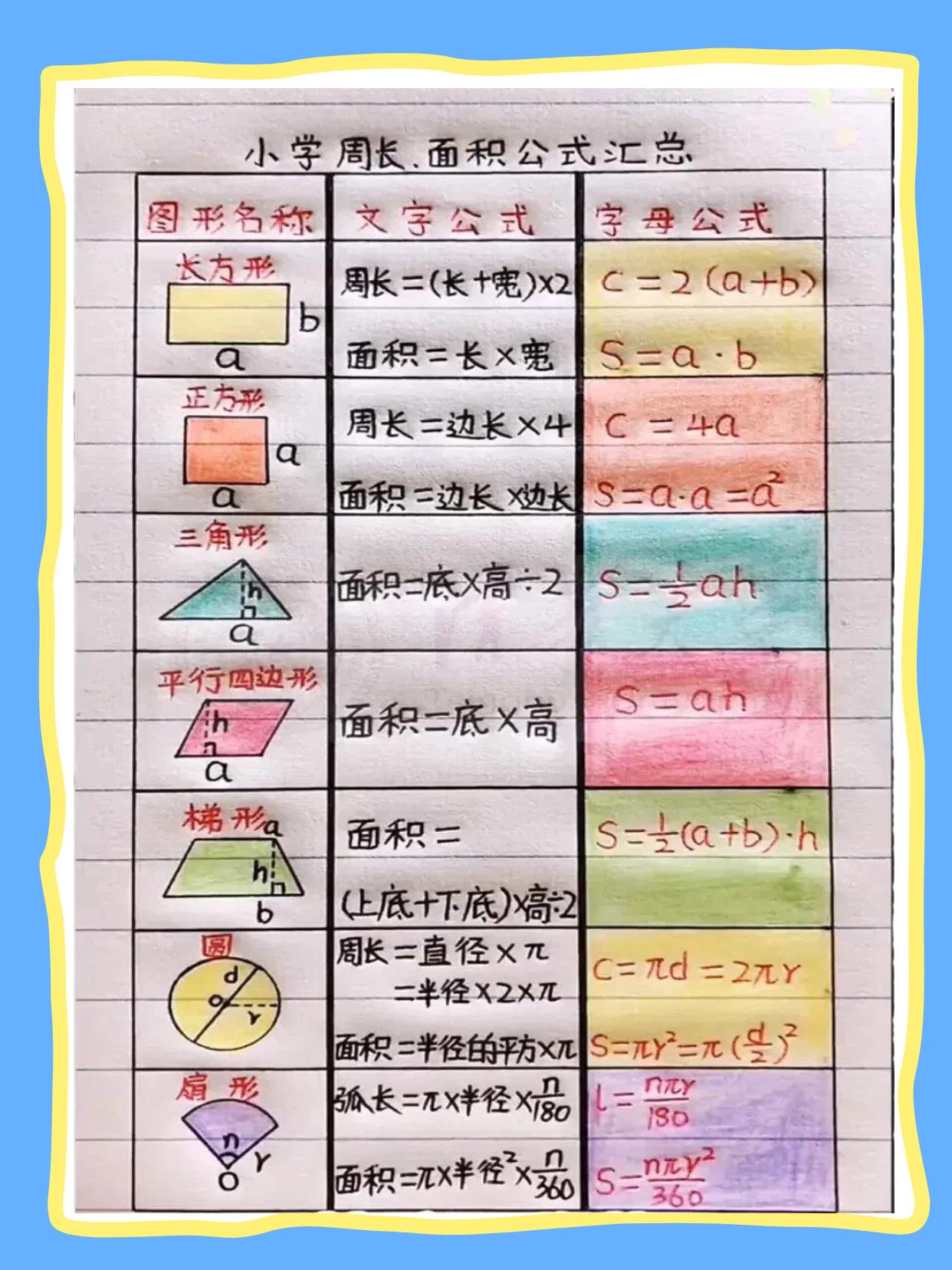 “最牛”班主任,熬夜将小学1-6年级数学常用公式全都整理了出来,全班同学靠这份公