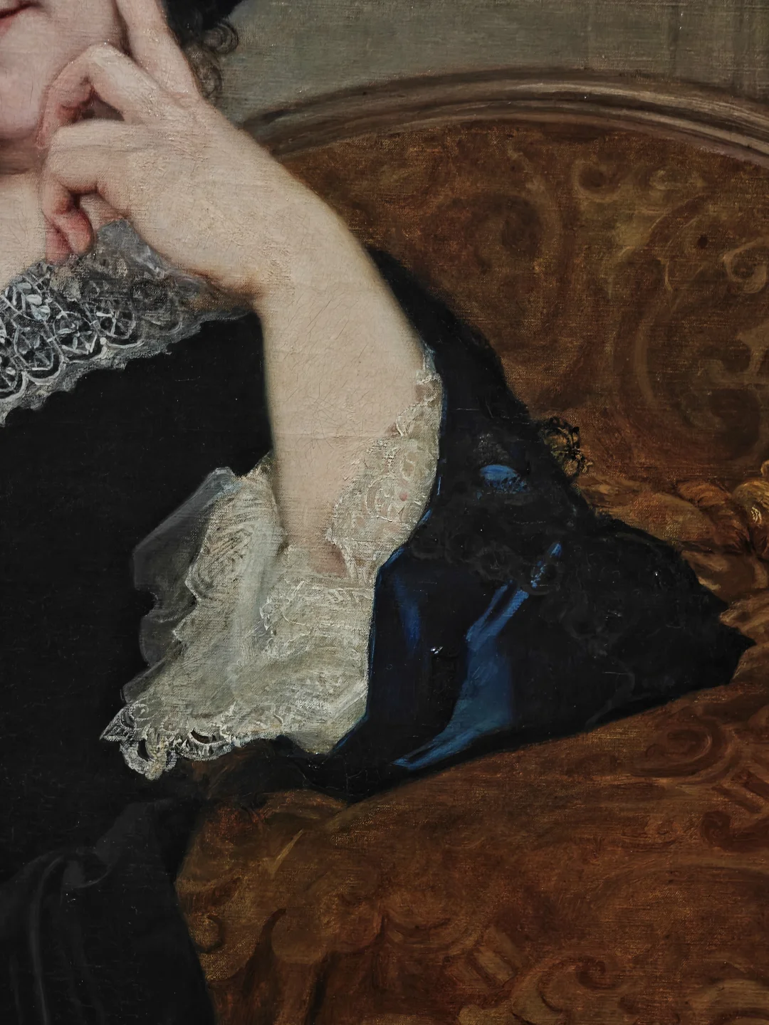 后期他专注于肖像画,画中的女性是法兰西喜剧院的传奇首席女伶,擅演莫里哀喜剧,其半世纪舞台生涯浓缩了法兰西喜剧院从浪漫主义到现实主义的转型历程。