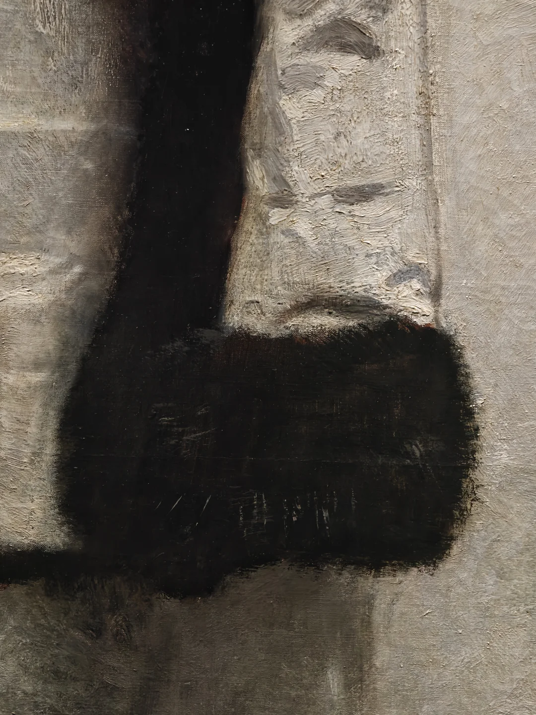 他强调艺术简约性,注重整体效果而非细节。他以一系列名人肖像知名。这幅巨大尺幅的全身肖像画中的女性为巴黎名伶Jeanne Pasca,锐利的眼神和神秘的氛围牢牢攫住观者视线。笔触雄健不失飘逸,精准的画面也有着强烈的力量感。