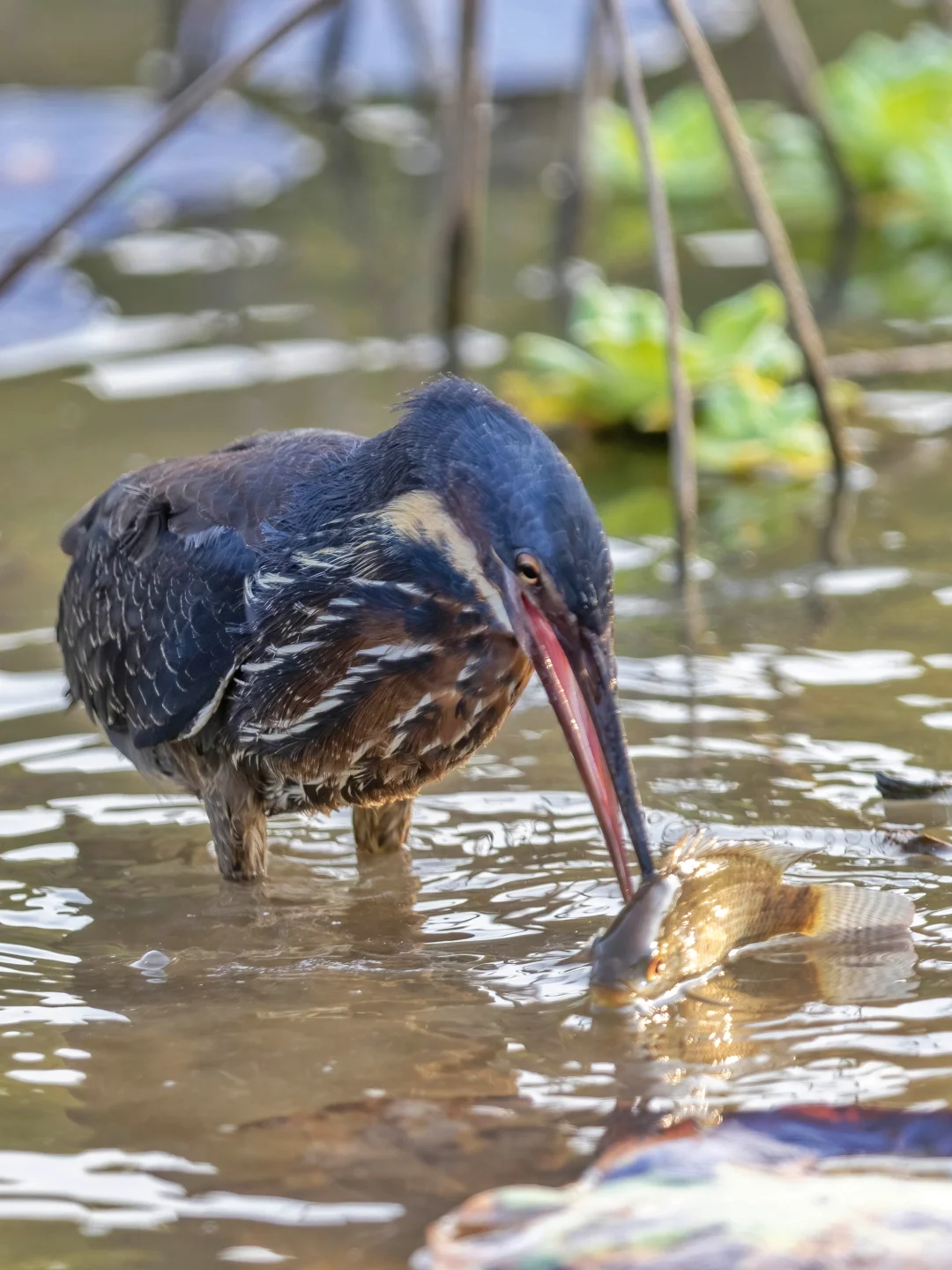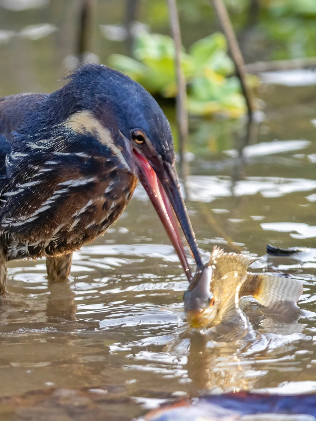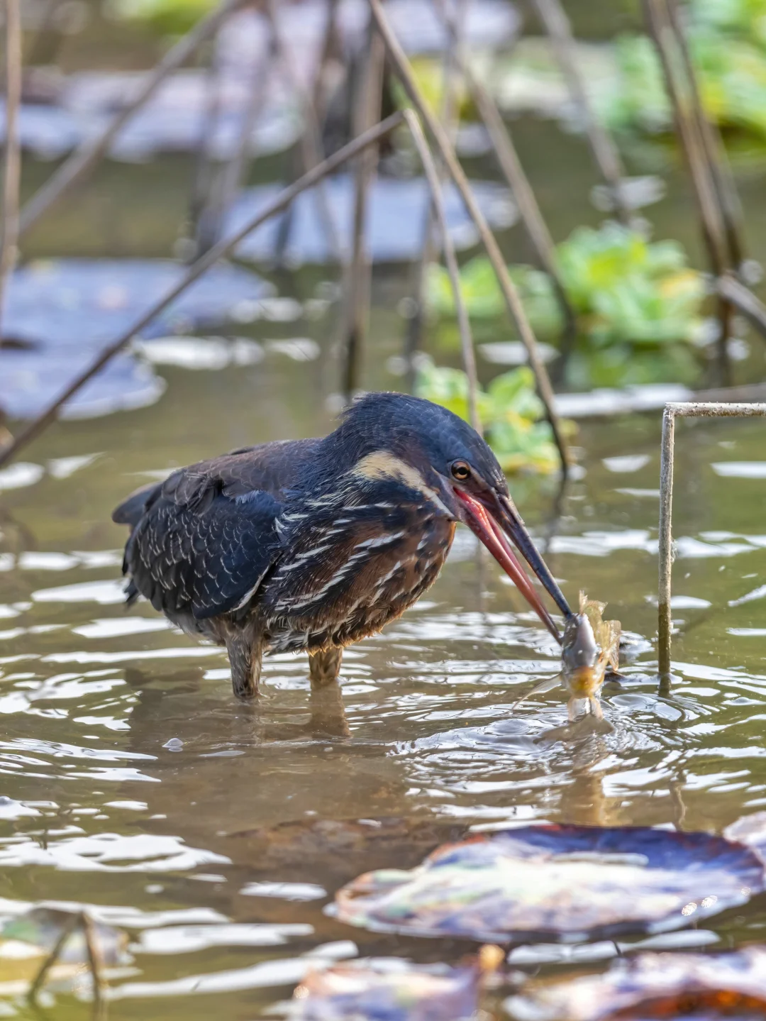 黑鳽多分布在东南亚和南亚等地,夏季时候会到我国长江流域以南去繁殖,所以通常我国东部地区的小伙伴在夏季更容易见到这种擅长伪装的涉禽。这次迁徙到来到福田红树林的黑鳽在深圳算是少见啦,所以最近几天都有不是小伙伴前往观察,等待它捕鱼成为一大热门。运气比较好,刚好一去没多久就找到了它,并看到了它捕捉到一条大大的罗非鱼。