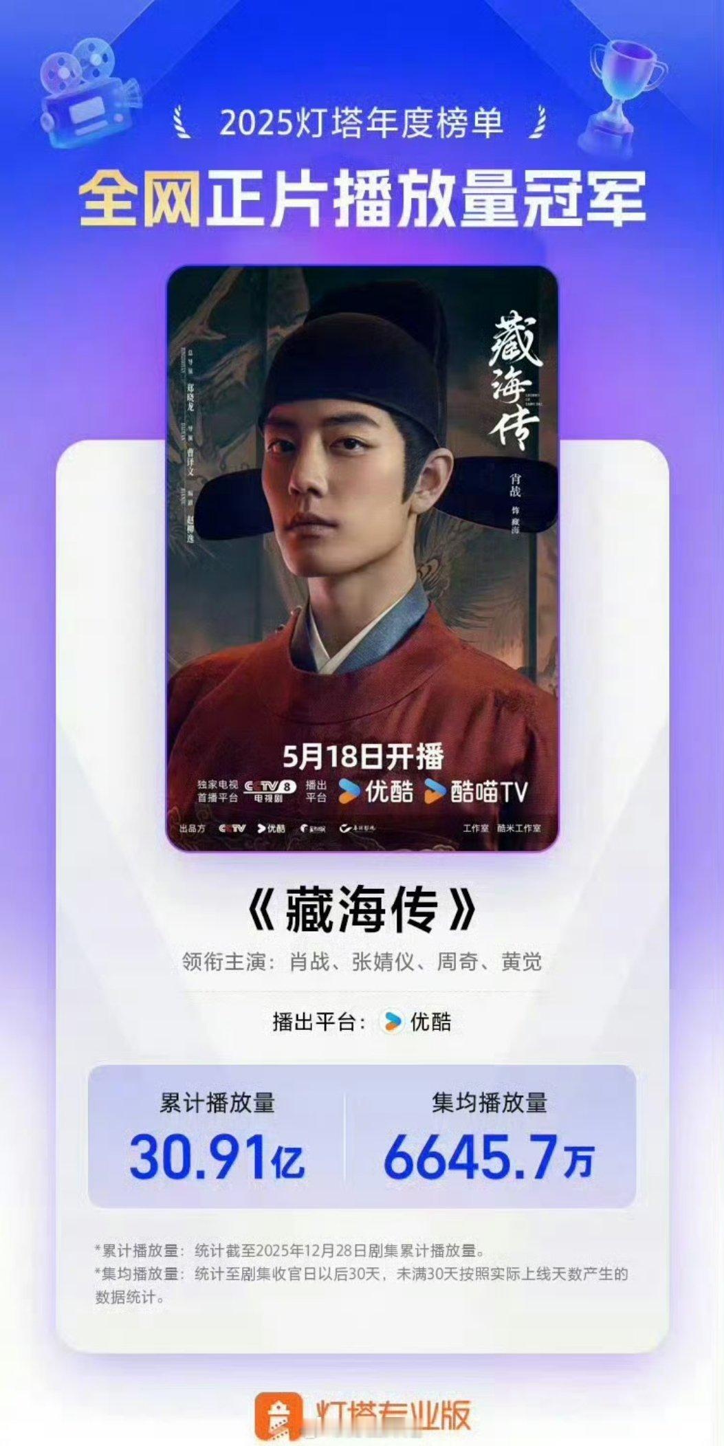 裤裤子又把肖战主演的《藏海传》专门拉出来表扬了,直接占据了灯塔、猫眼、云合三榜年冠,直接可以成为肖战的养老剧的节奏啊