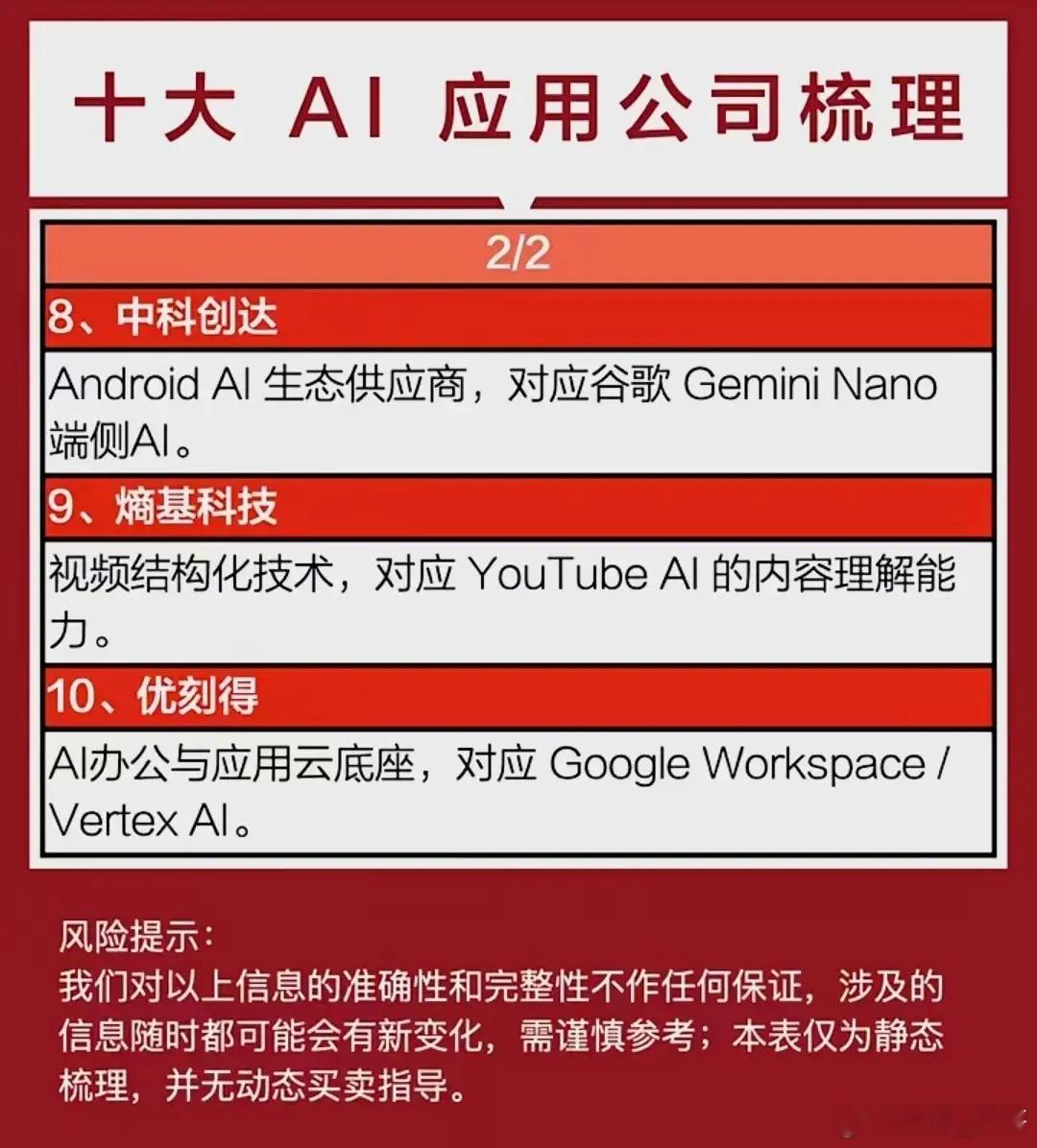 十大AI应用概念核心龙头盘点!AI应用概念政策驱动逻辑:村里印发《关于深入实施“人工智能+”行动的意见》明确培育“模型即服务”“智慧体即服务”生态,支持芯片攻坚、智算集群建设。全球AI市场规模预计2028年达8159亿美元,五年复合增长率32.9…AI应用概念核心龙头代表有哪些?蓝色光标:一家在大数据和社交网络时代为企业智慧经营全面赋能的营销科技公司。连续多年跻身全球传播集团前十。三季度净利润同比58.90%科大讯飞:AI语音绝对龙头,文语音识别/合成、NLP等核心市场份额常年第一。公司的星火大模型推动B/C端落地提速;2025年前三季度营收增长、亏损收窄,Q3单季扭亏为盈、现金流回正。AI应用公司涵盖广告营销、办公工具、语音技术、端侧AI等多个关键领域,从蓝色光标、科大讯飞到中科创达,每家企业都锚定了谷歌、YouTube等国际巨头的核心AI能力方向。具体行业龙头企业名单见配图。