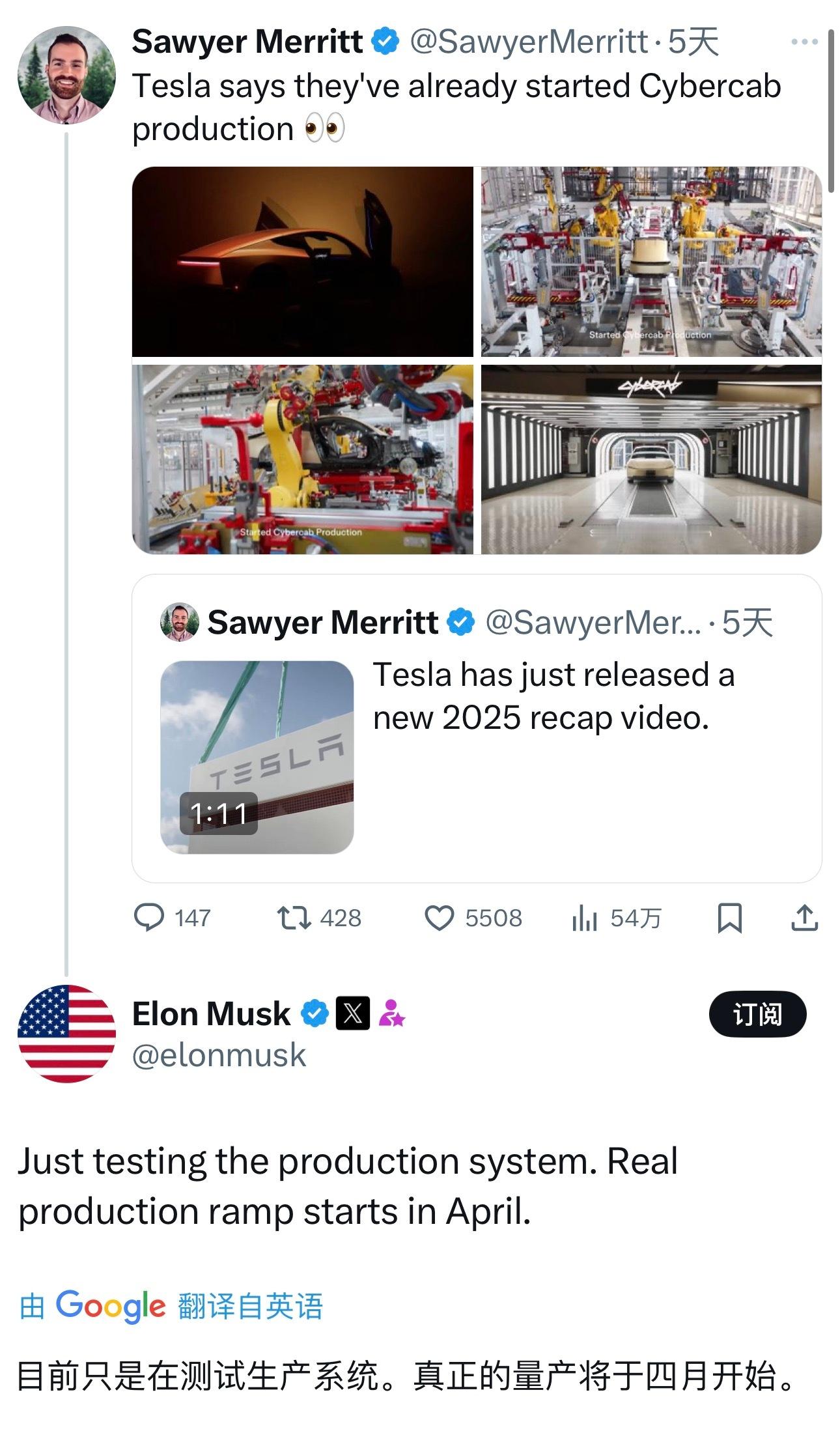马斯克官宣特斯拉 Cybercab 将在 2026 年第二季度在德州工厂上线量产有机会给大家拍一期这个真车体验视频