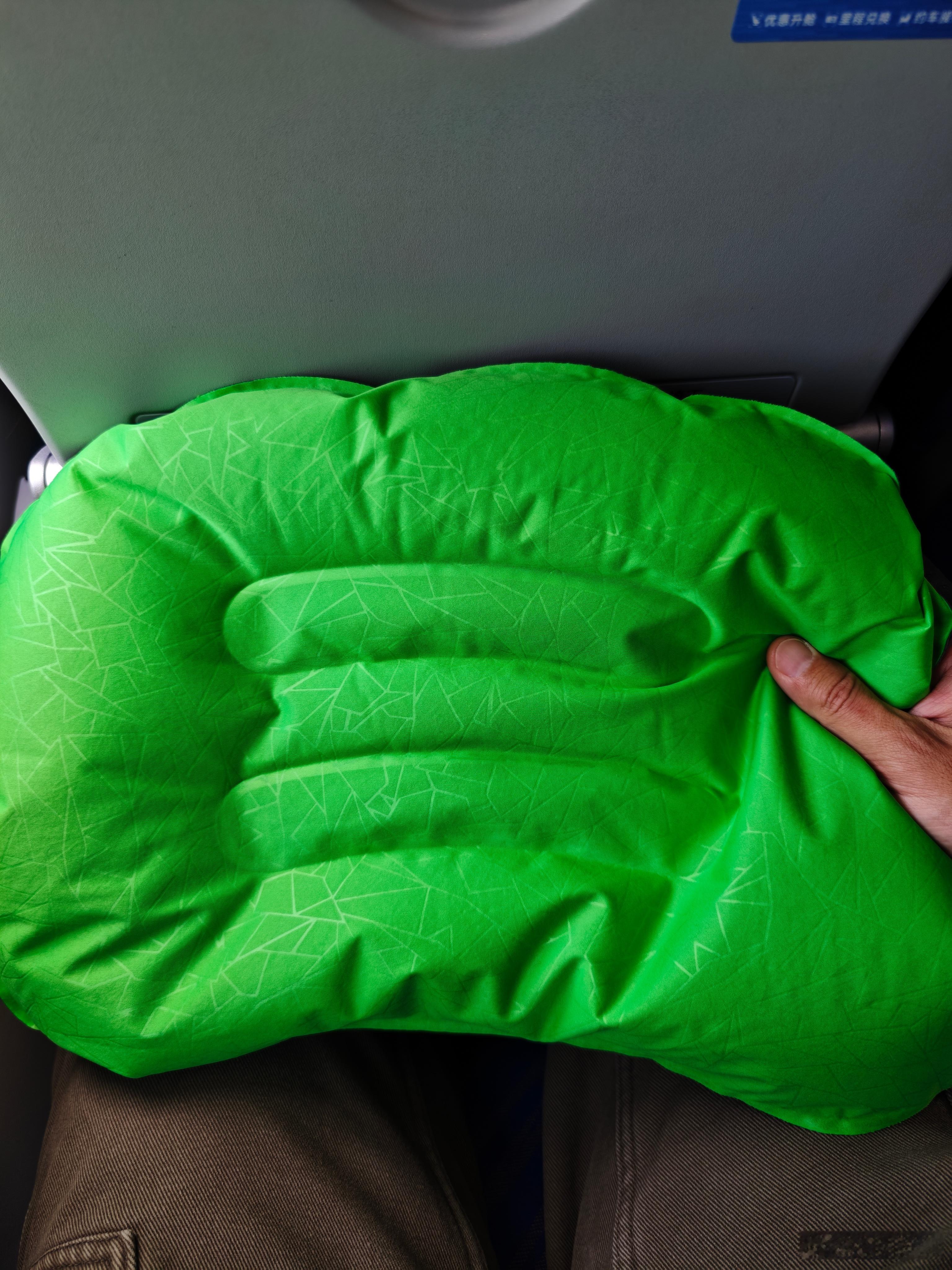 坐了一趟南航的“运奴船”,这腿部空间,我1米7都觉得窄,中间的人不出来我都进不去椅背也是又直又硬,还好今天带了个充气枕头当腰枕,效果还挺好!气不用打得太满,把腰部空隙填上就行,下飞机腰背都舒服多了。收纳起来就巴掌大小,不占行李空间。无广推荐!