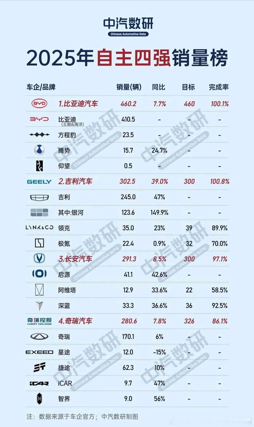 震惊!到了2026年自主五常变自主四强了 有人被开除了?之前五常的格局确实也变化了现在自主四强的门槛提升到年销三百万左右了四强都是 轿车 suv 两条腿走路的看来光靠suv 真的没办法和竞争对手保持同一个量级了。现在车企想要进自主四强混动 纯电都得有 国内国外都得卖尽量全车型 全价位覆盖 20万内重兵云集 以集团冲锋对抗友商集团冲锋以及出色的应变和学习能力 快速对标跟进友商主打特色技术。这中间 比亚迪确实是做的最好的一家新能源渗透率100% 远超竞争对手全价位覆盖六万到二百万.2025海外出口一百万,含金量拉满。20万以下 密密麻麻车山车海。虽然自研能力拉满 开创多条技术路线但 “比学赶帮胜” 仍然是企业座右铭20万以下主流市场吃不到大份,进自主四强就是空中楼阁
