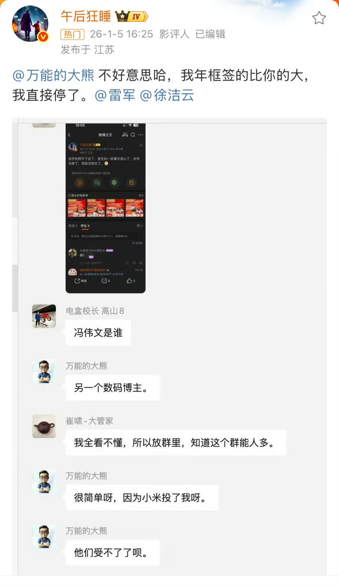 大熊 小米小米投了万能的大熊,一众米系kol怒了