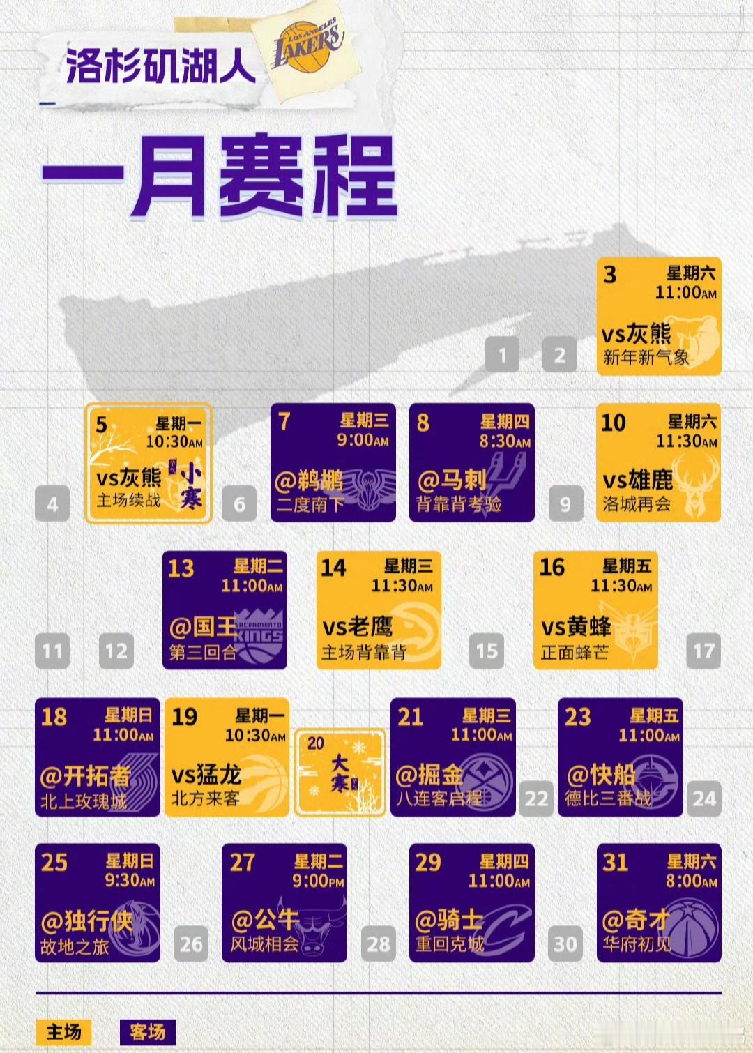 看了一眼湖人一月份赛程,感觉很悬啊!随着今天湖人打完灰熊后,一月份已打了两场比赛