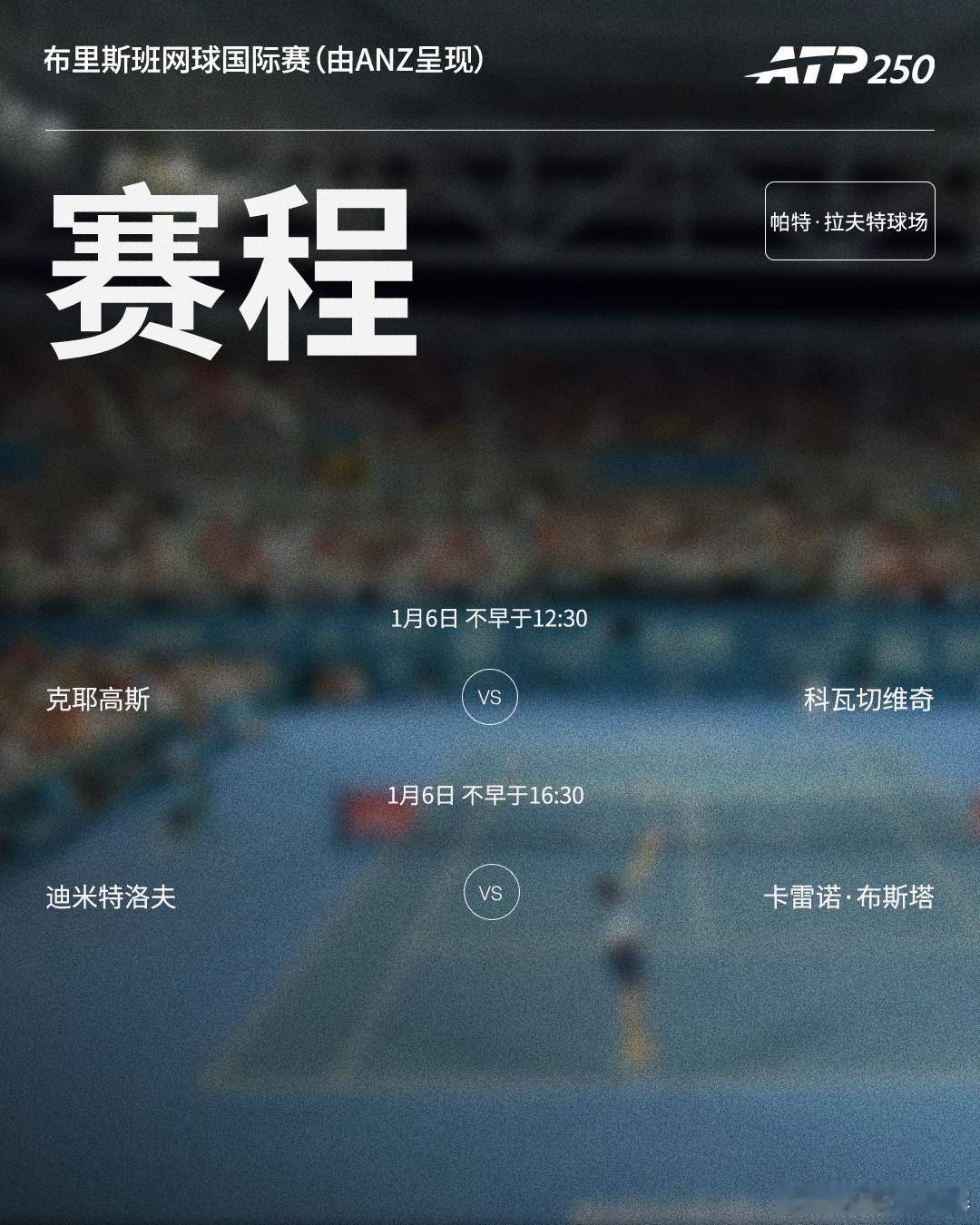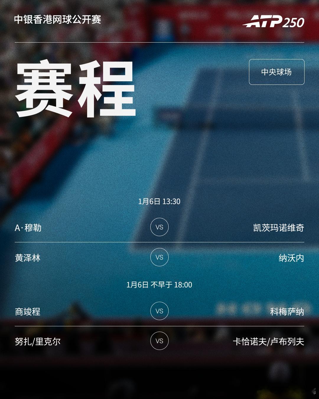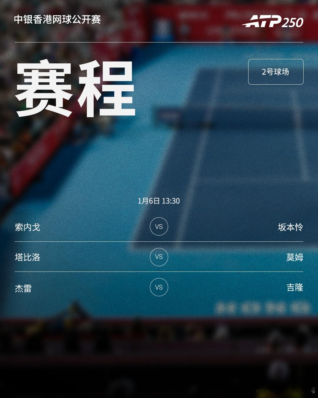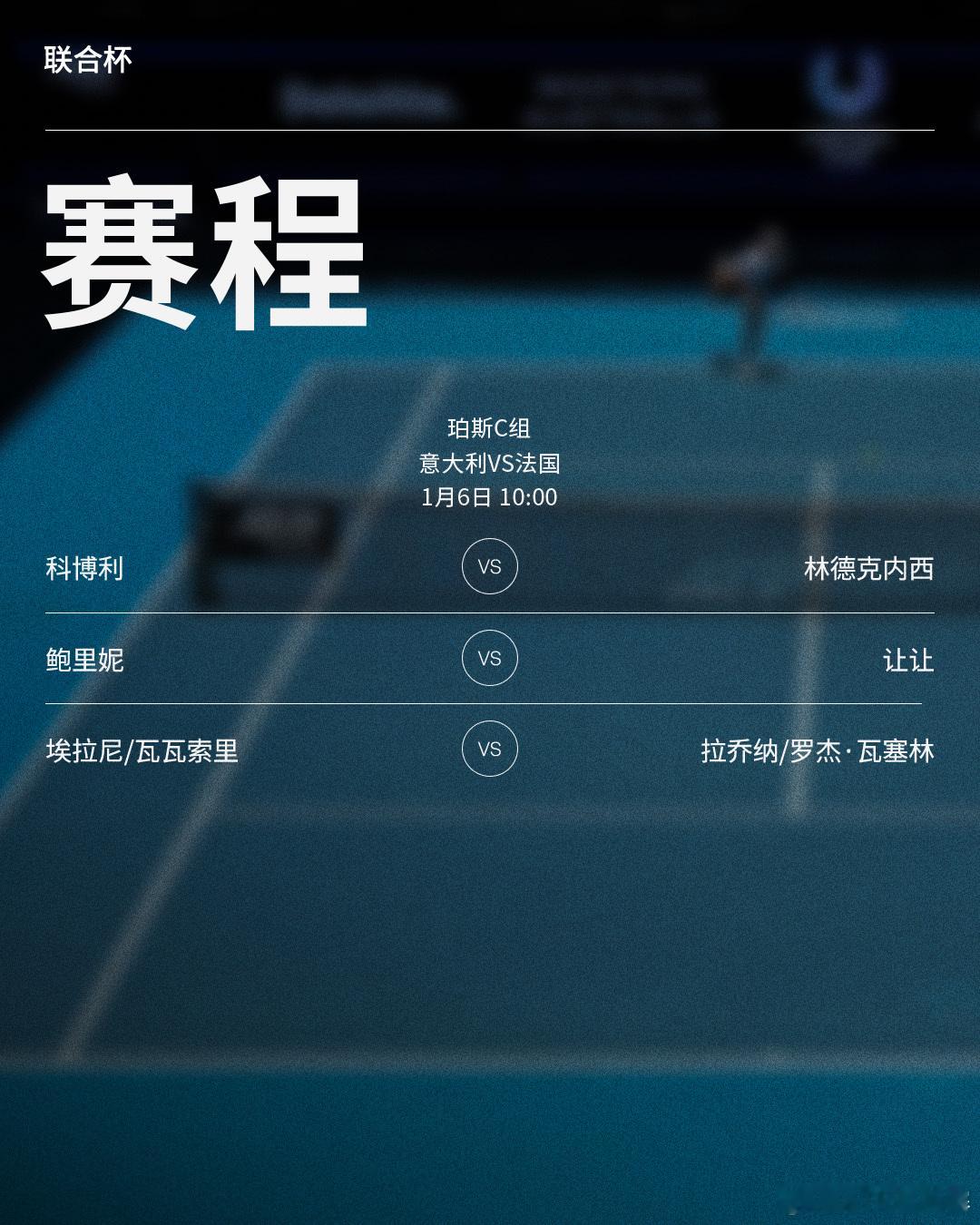 三项赛事明日赛程见图(均为北京时间) ⭕️2026联合杯小组赛📍悉尼🎾B组加拿大对阵比利时,D组澳大利亚主场迎战捷克📍珀斯🎾C组意大利对阵法国⭕️ ATP250中银香港网球公开赛 📍香港 🎾商竣程、黄泽林迎来单打首轮;卡恰诺夫/卢布列夫出战男双⭕️ATP250 布里斯班网球国际赛(由ANZ呈现) 📍布里斯班🎾克耶高斯迎单打复出首秀,前赛会冠军迪米特洛夫亮相网来不息ATP