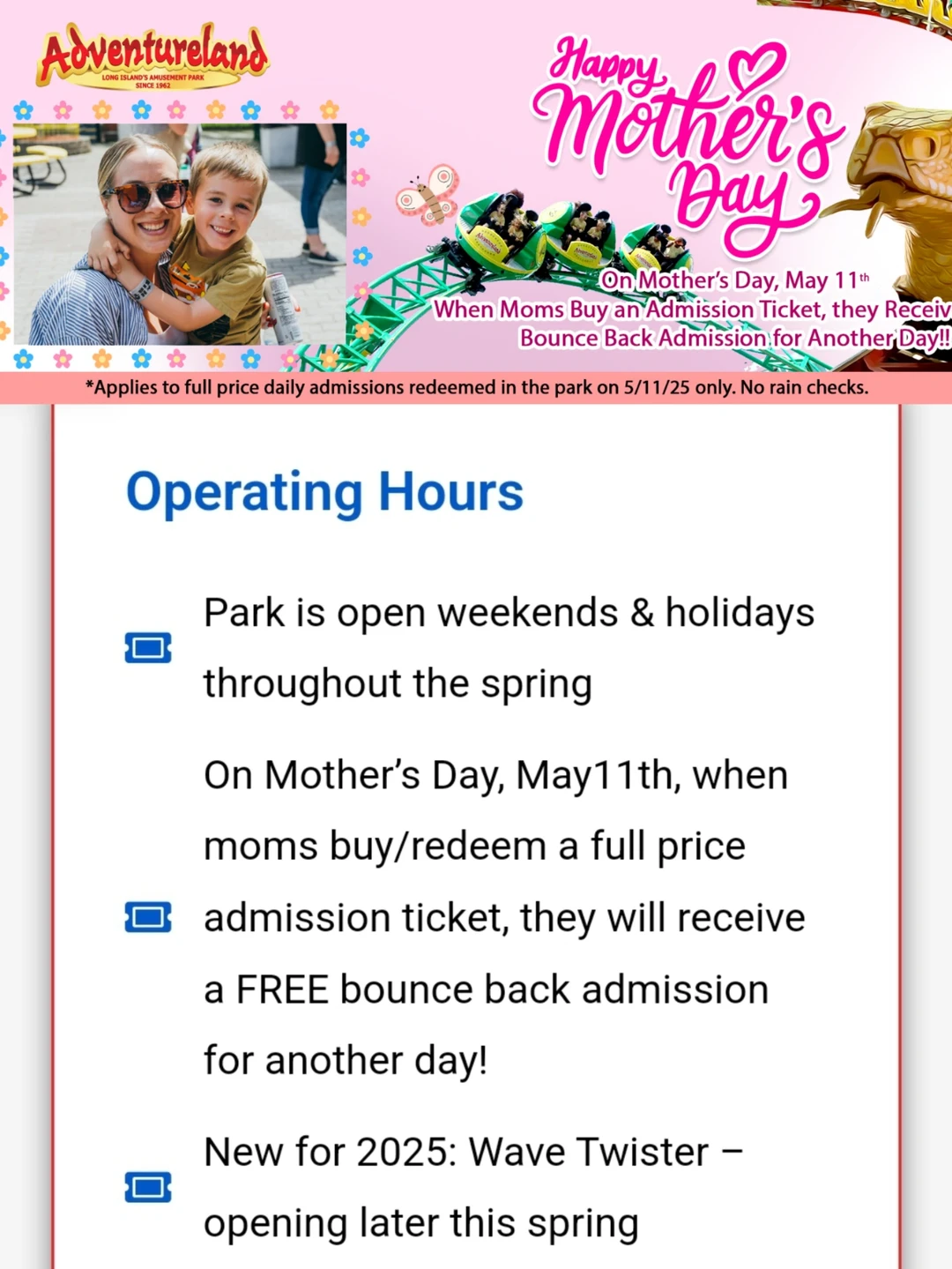 ❤️母亲节周末两天,全家每人都优惠$10