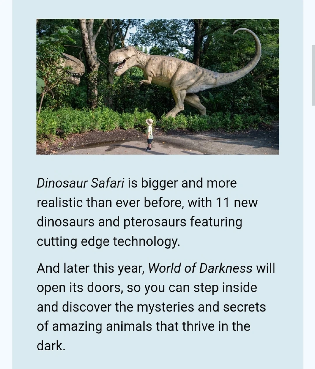 ⭐加钱项目包括:恐龙园、猩猩馆、丛林馆、旋转木马、Nature Trek 爬树、小娃动物园