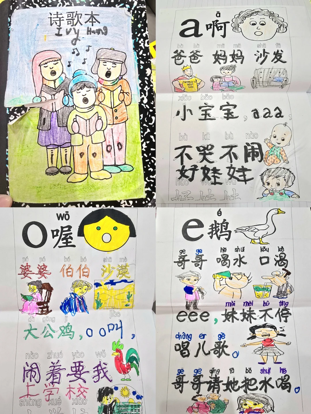 ❤诗歌本是课堂内容,学习了拼音、一些诗歌和小故事
