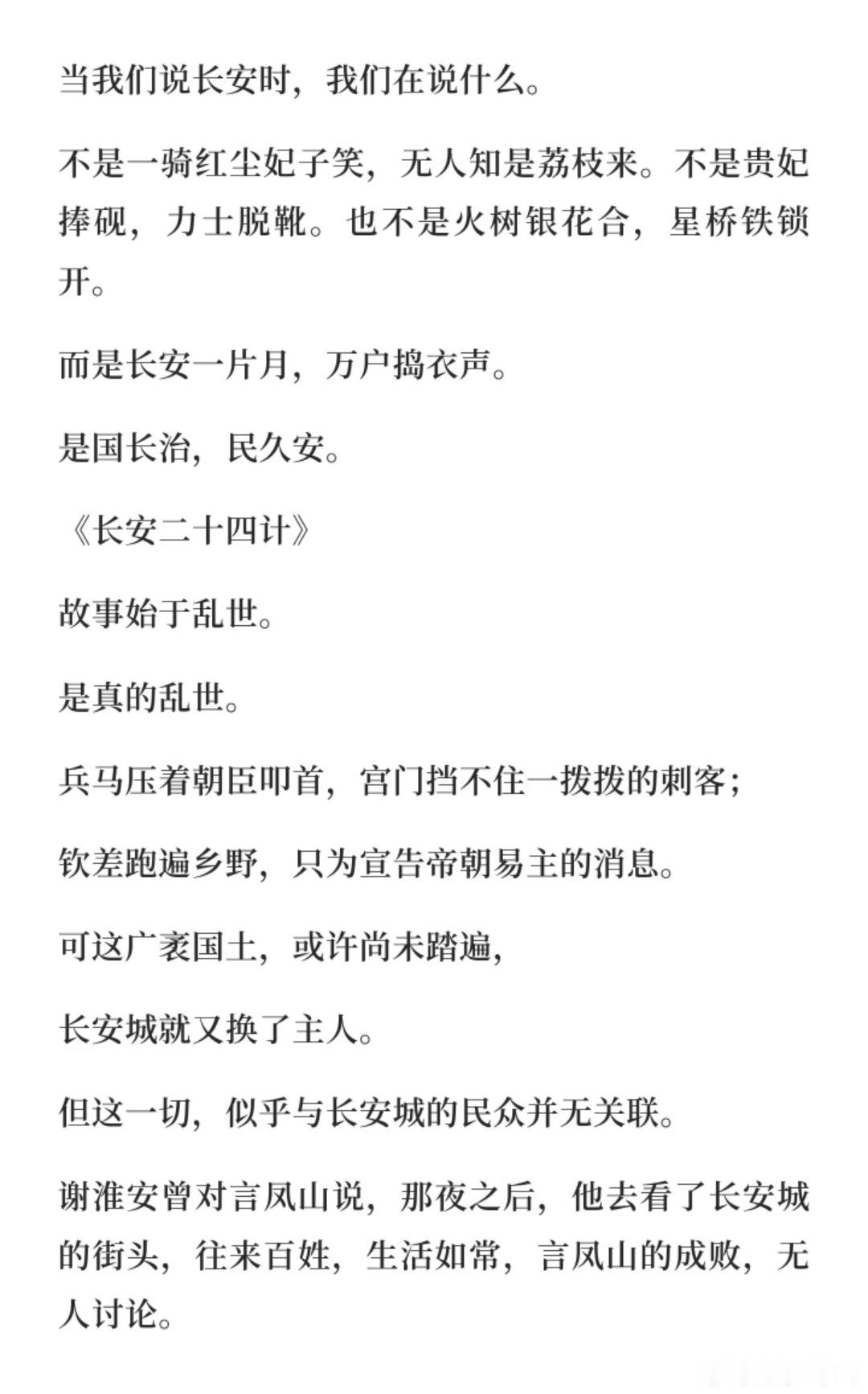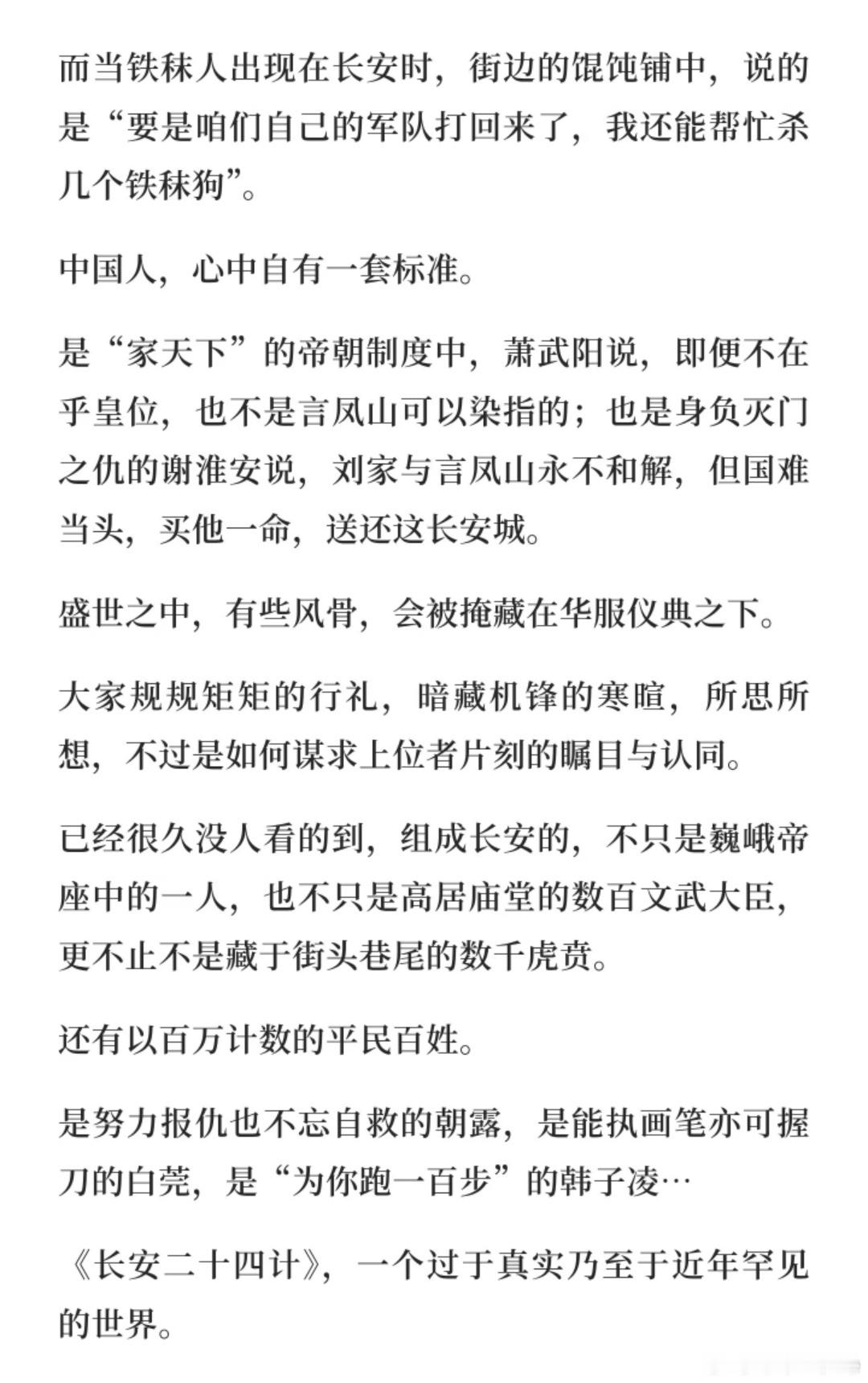 24G不断在观众的心里生长着,遍地开花。别人都在写长安的繁华,24G在铸长安的魂骨,民以食为天,麦田始,谷仓终,为了口米面活着,为这盛世长安。精致却不虚浮,宏大却很落地,《长安二十四计》真是一部诚意之作,有骨血、有生命力,细节里全是用心,追完只剩满心惊艳,好剧就该被更多人欣赏,值得所有人闭眼冲。跨年电影愿长安二十四计成毅谢淮安