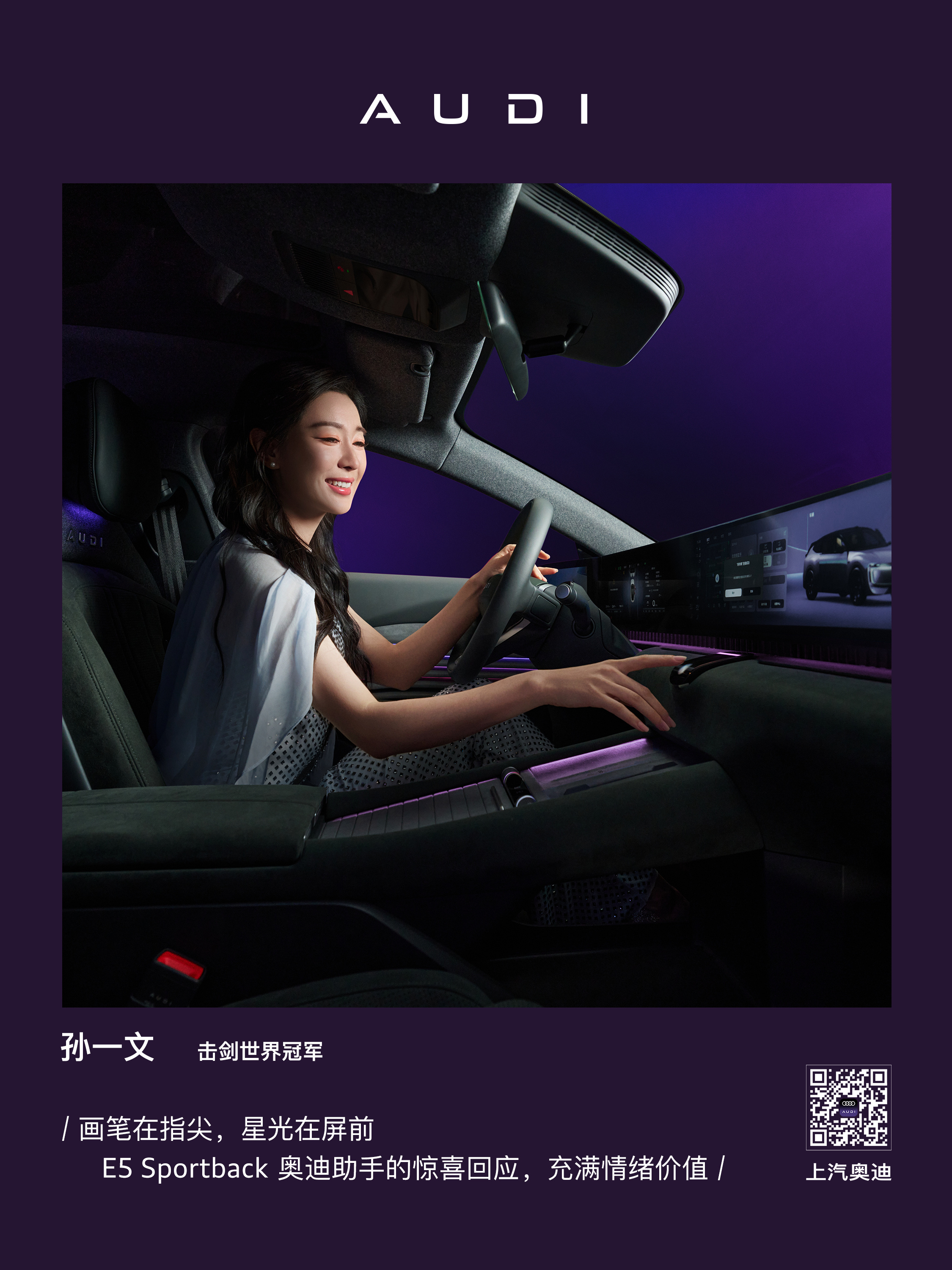 体坛冠军们的共同选择竟然是ta 大家发现了吗?体坛冠军很多都选择了奥迪E5 Sportback,这款AUDI新车集安全性、操控感与一身,高科技智驾和个性化内饰,最大程度的适应运动员的需求。20英寸曜黑轮辋、Brembo刹车卡钳轻松制导;应用Momenta EBM端到端大模型辅助驾驶方案掌控全程;59英寸贯穿式大屏、前排座椅按摩、后排座椅加热、BOSE悦动音响,为每一段旅程提供最舒适的驾驶体验。今晚的CMG体坛荣耀之夜,AUDI为体坛冠军助力。