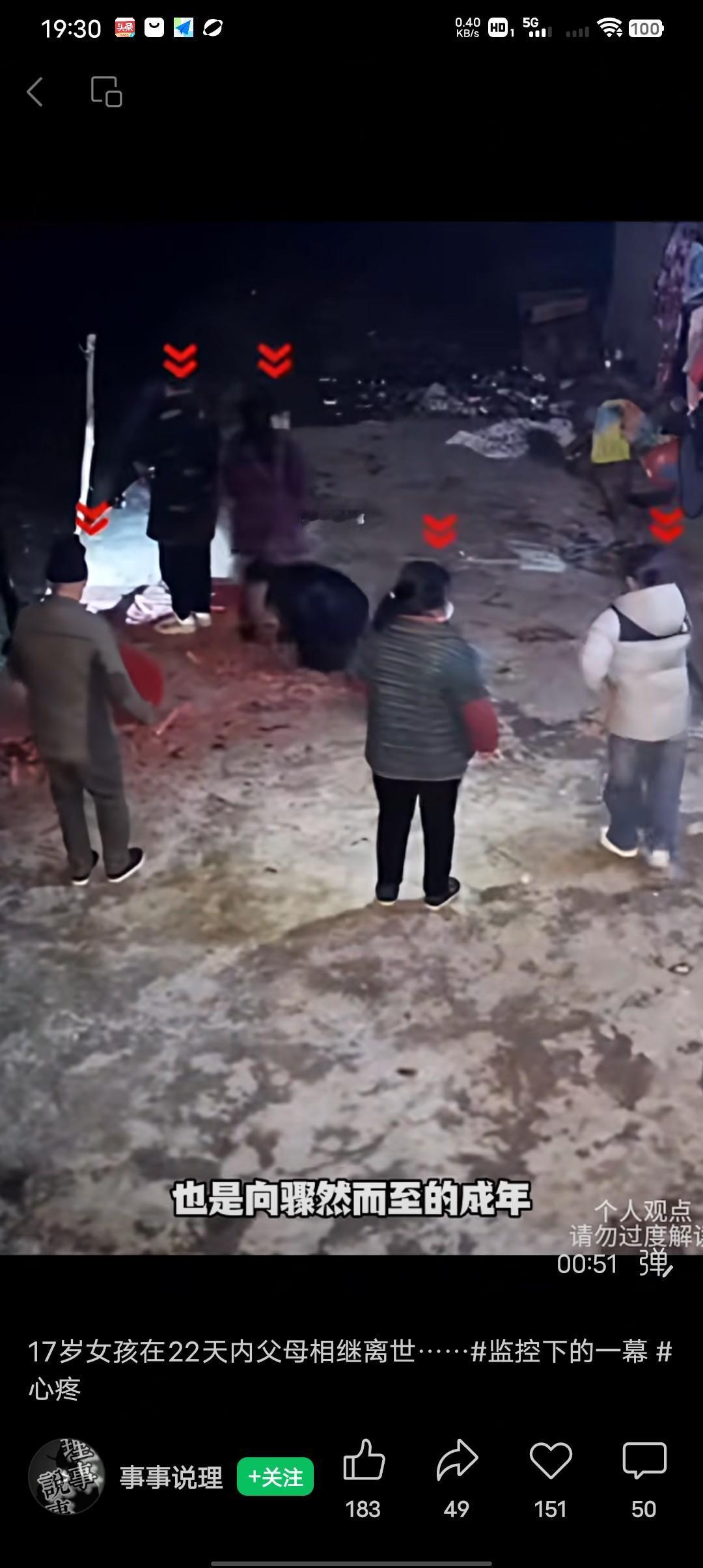 全网被这个17岁的小女孩给整破防了! 2026年1月3日湖南张家界某村一个17岁小女孩,在凌晨独自一个人点燃了那一串报丧的鞭炮,有着风俗喜事不请不到,白事不请自到,深夜的鞭炮声告诉村民们,有人的生命要离开这个世界了了。说实话,当看到视频监控视频中,她一个人点燃鞭炮的时候,真的觉得她好孤单,好落寞好无助,我想每个人在看的那个视频的时候,在看到她一个人孤零零地点燃那种鞭炮的时候,心里都会狠狠的疼一下。 她还未成年,她刚刚17岁,22天前她还是一个有父母疼的孩子,22天前,让她失去了妈妈,22天后,他的爸爸也病世了,说实话,她从有父母疼的孩子,到成了孤女,只给了她22天时间, 甚至残酷的没有一个适应期,她还没有从失去妈妈的痛苦之中走出来,然后又让他去触及失去爸爸的痛苦。 看到她给每一个到场的人磕头的时候,心里真的很疼很疼,她还那么小,其他的孩子这个年纪还在爸爸妈妈的怀抱撒娇,而她却要一个人面对父母双亲突然离去,现在却让她一个未成年的小女孩,要独自面对亲人的离别。 有网友说她还那么小,还知道那么多,还知道孝子要跪谢帮忙的左邻右舍,有网友发了一条最暖心的评论,他说希望女孩在以后的日子能被生活温柔以待!