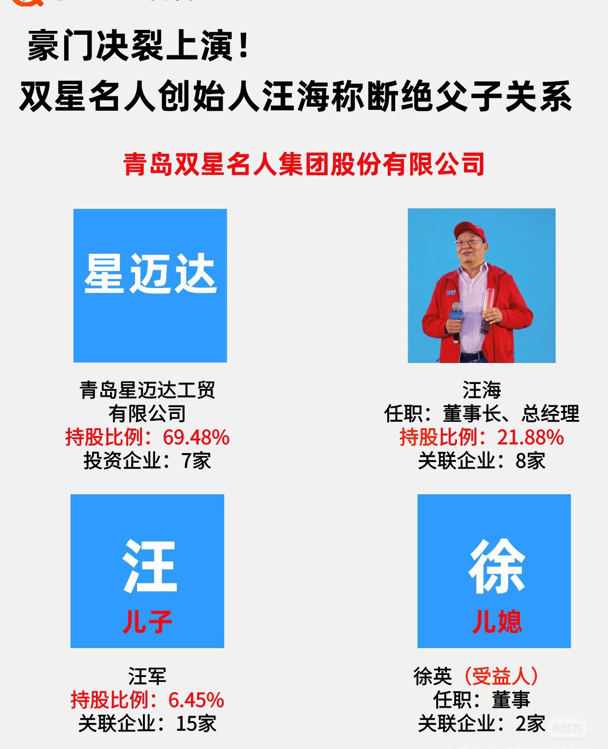 真是不容易啊,汪海,这下子闹得沸沸扬扬了吧。为了民族品牌不被外人接手,硬下心肠跟亲儿子儿媳断绝关系,这得下多大决心? 儿子儿媳都是美国身份,他说双星是中国人的品牌,绝不能让外国人管。可这哪是小事?从2022年儿媳控股的公司增资成了大股东,他就慢慢没了实权,现在连接班人都要被美国人占了,换谁能忍? 去年五月董事会要免他职,儿媳还说他私刻公章,他直接上报纸反驳,还告到法院。现在干脆发声明断绝关系,说是要打破血缘接班,找能人来管。这哪是闹脾气,分明是急眼了护着自己打下的江山。 你说这老头图啥?不就是怕自己拼了一辈子的民族品牌,最后成了别人的?