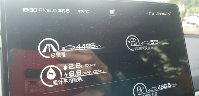 提车一个月零2天 跑了4000多公里了,hev和ev模式对半,加油2箱,现在第三箱剩一半,平均油耗不好说,但是一箱油大概1000公里左右吧。使用途中除了之前帖子说的问题另外还出现几个小问题,第一、氛围灯有时候突然闪粉色闪几下,但是不经常出现,第二、轮胎气压掉的很快,新车4轮是2.6,跑到3000多公里的时候4轮就剩下2.3左右了,第三、快充到满有10%都是虚电(应该所有新能源都是一样吧),第四、朋友另外一台车转弯有异响和刹车异响,车跑了1000公里左右,去问售后说等到首保再去检查,暂时只出现这些小问题