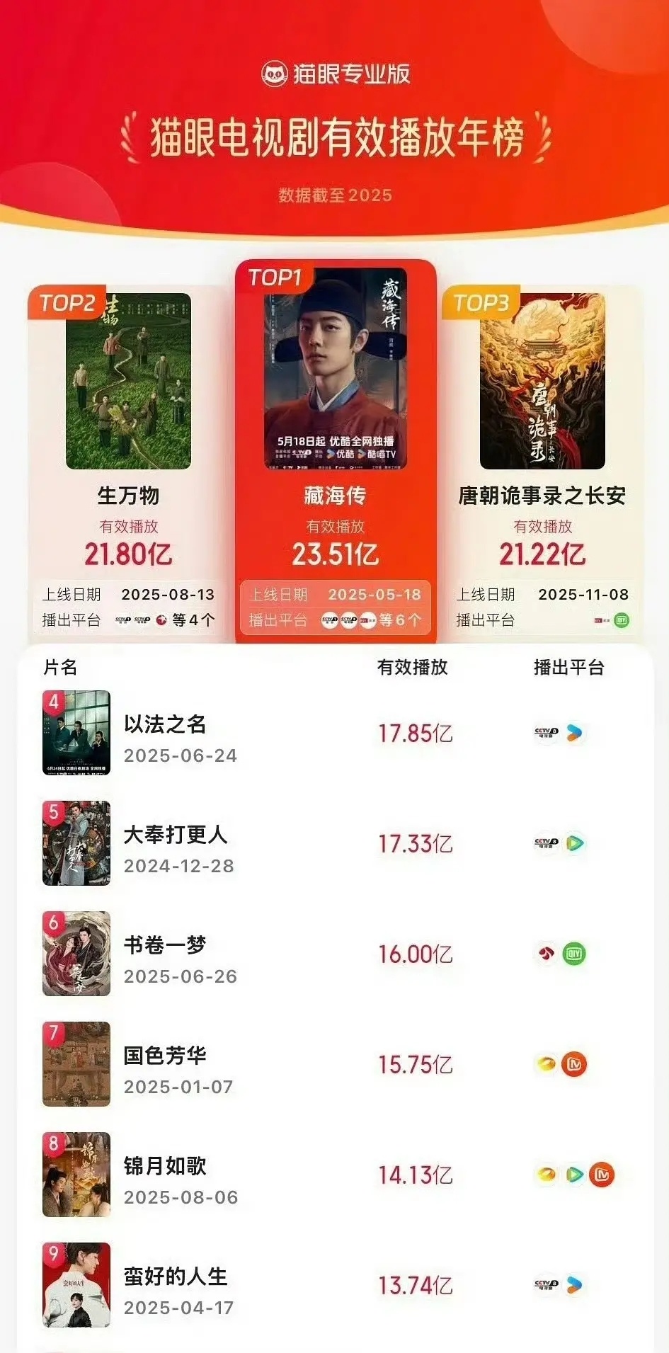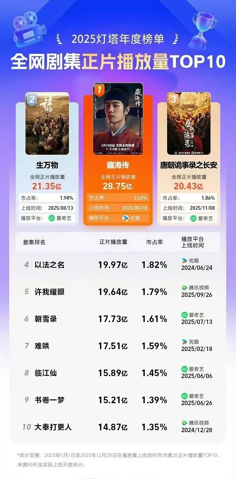 继灯塔猫眼后,云合也发了25年年榜!!