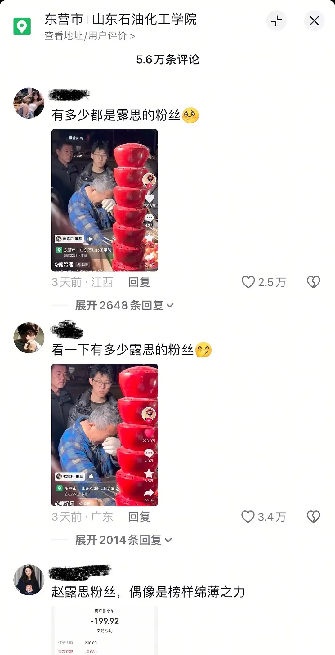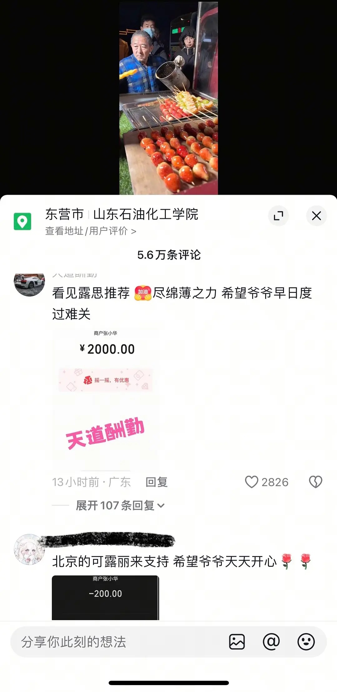 赵露思影响力还是牛的,抖推荐的糖葫芦爷爷视频评论区一路往下刷好多是因为赵露思捐款的👍