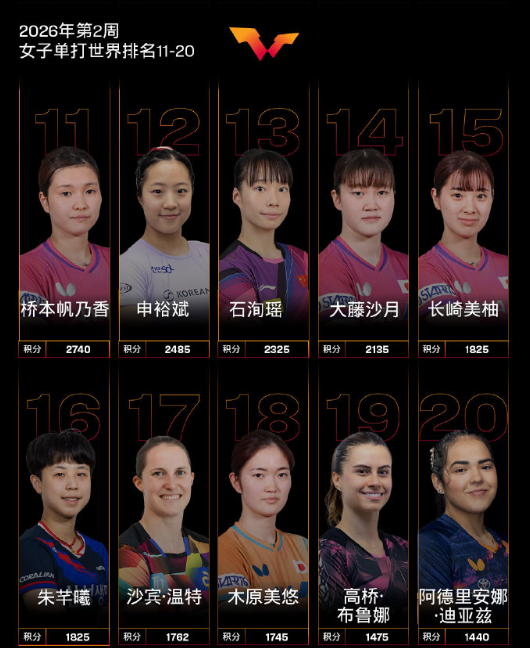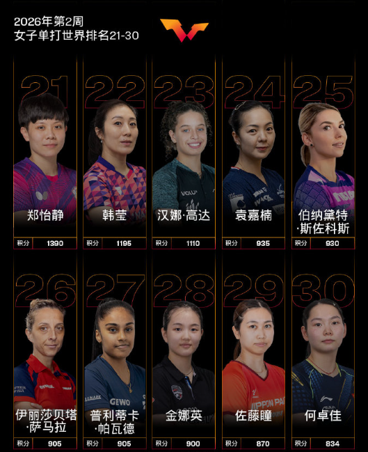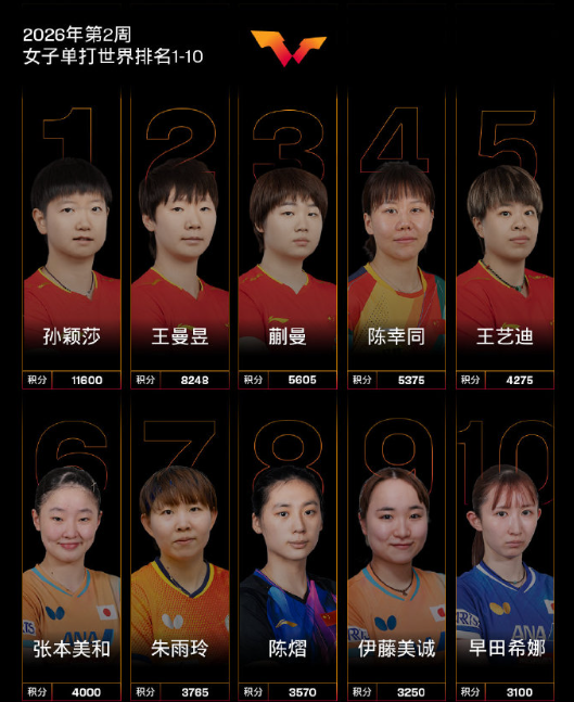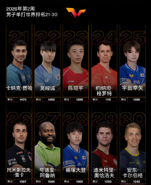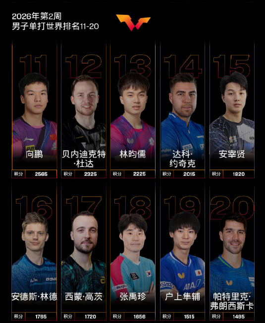 【国际乒联2026年第2周世界排名】
